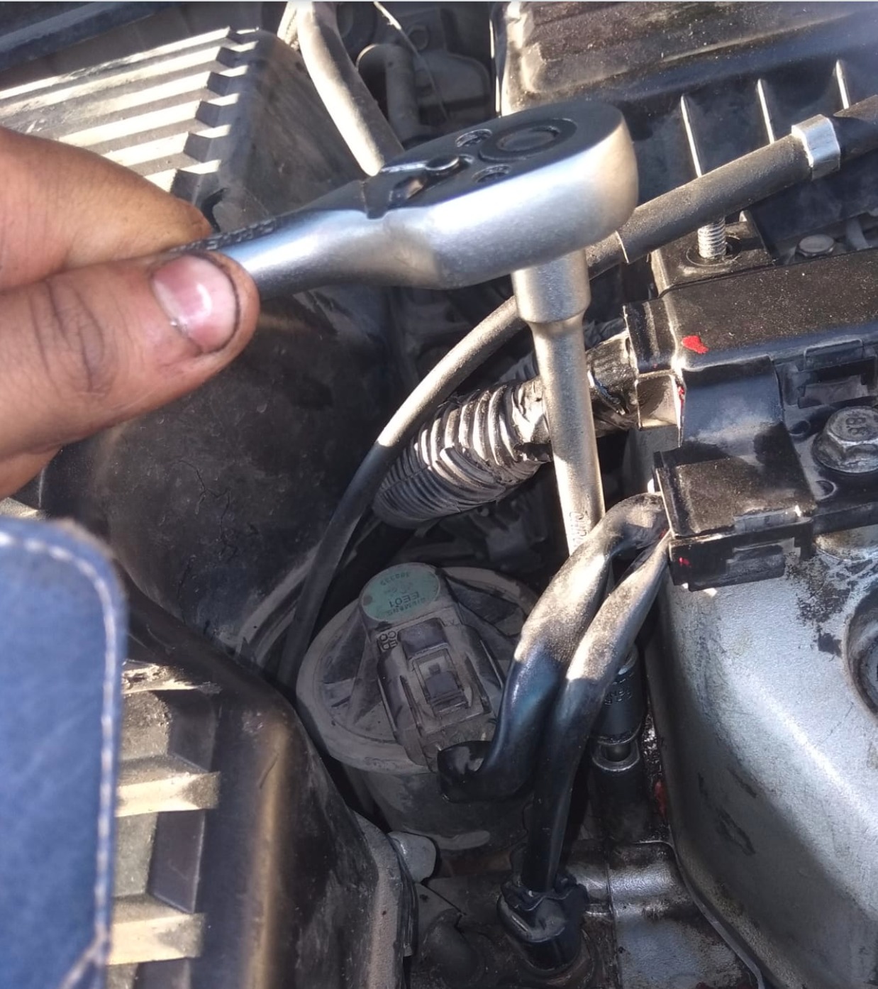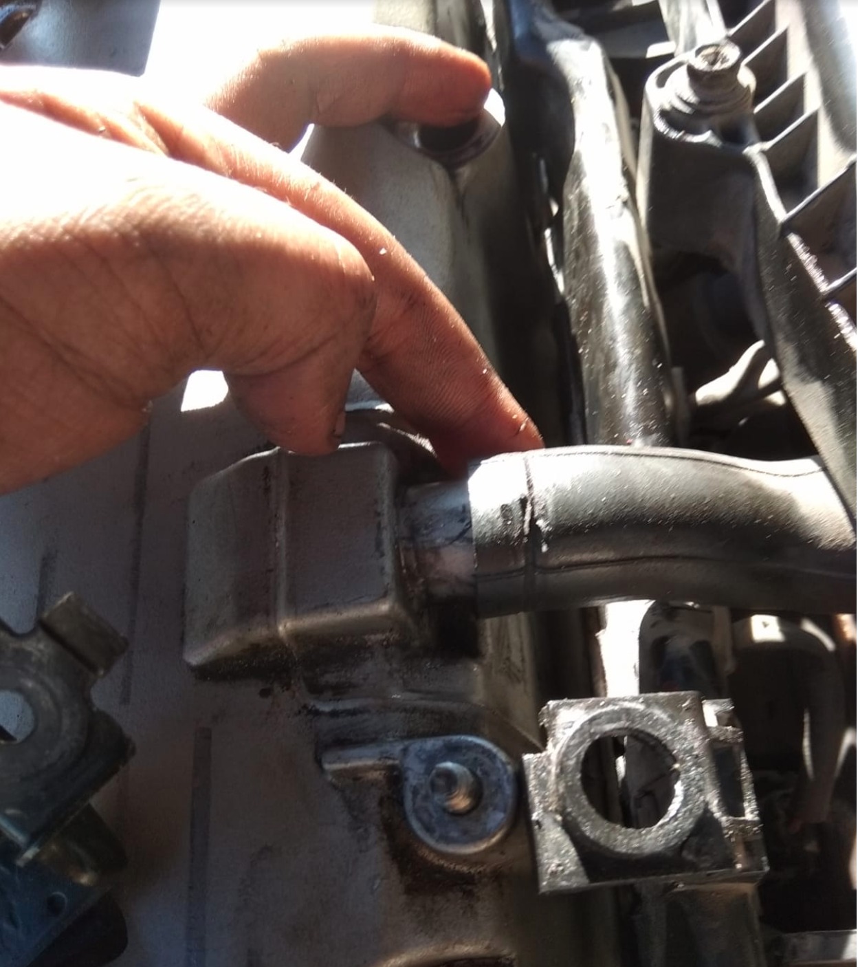 הבורג הראשון נמצא בפינה הימנית העליונה – קרוב לפתח מילוי השמן, ניעזר במאריך להוציא אותו.