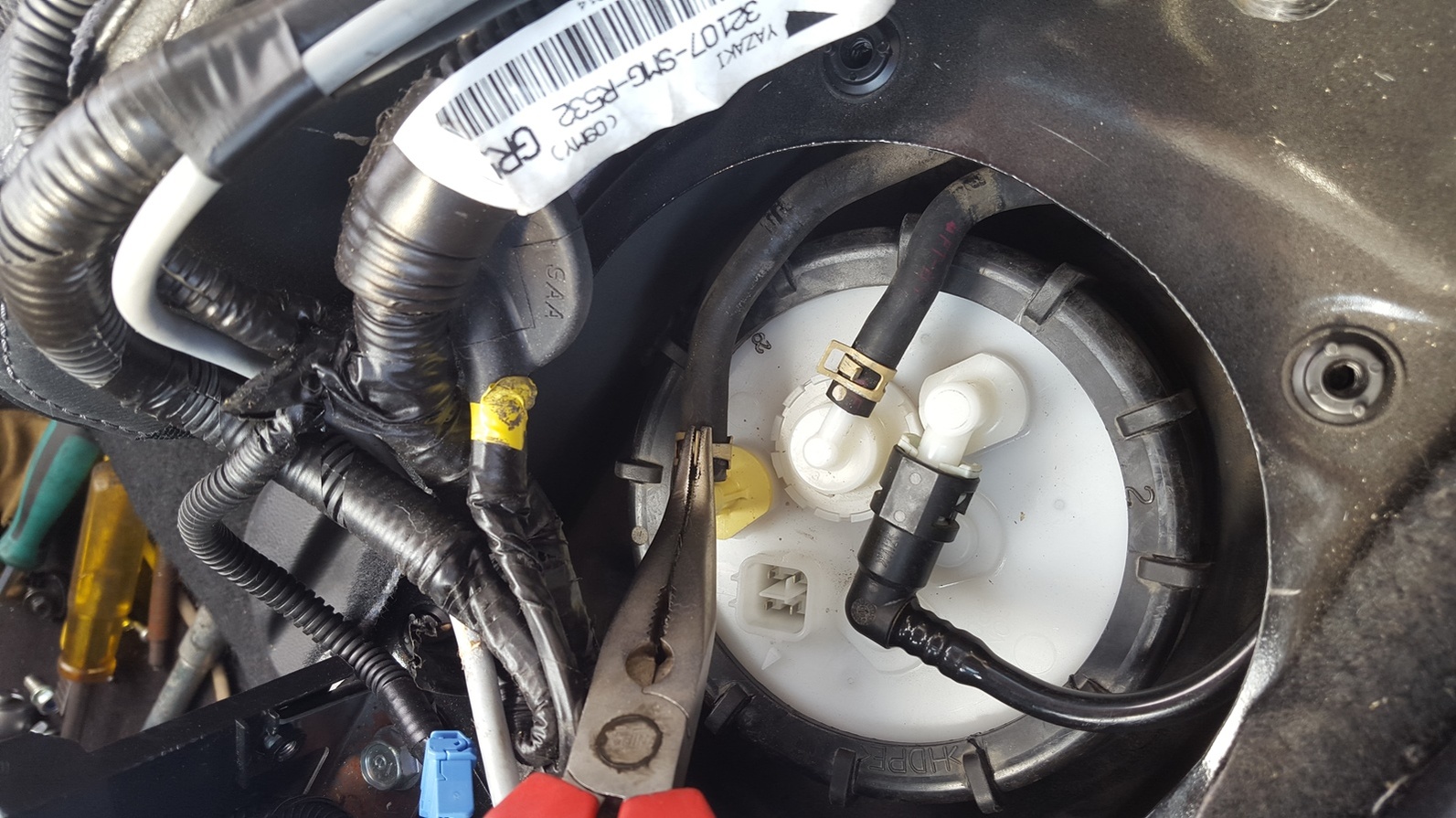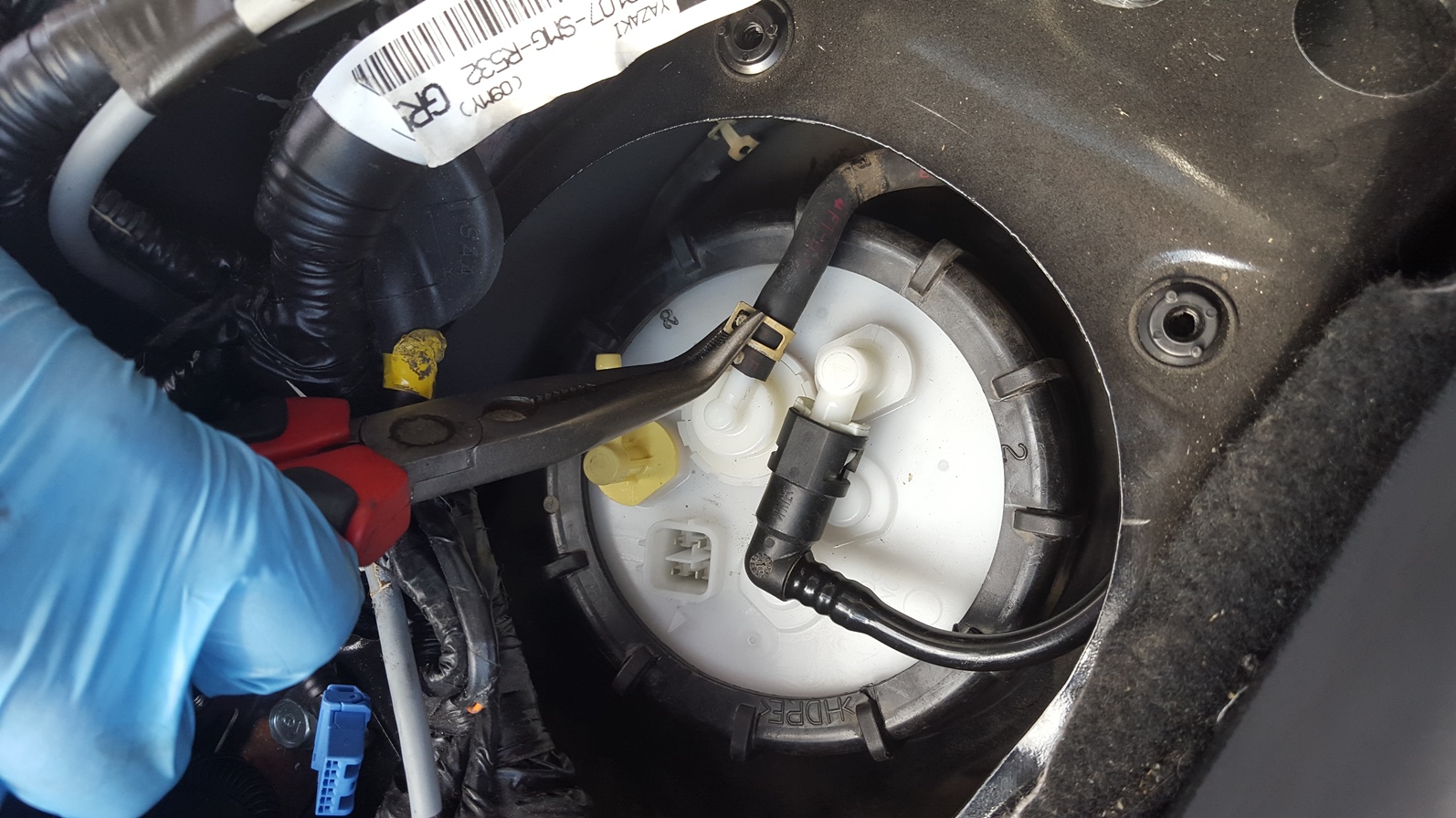מנתקים את המחבר החשמלי של המשאבה. זה זמן טוב להניע את הרכב על מנת שלא יהיה לחץ דלק בצינורות. יתכן והרכב לא יניע כלל.