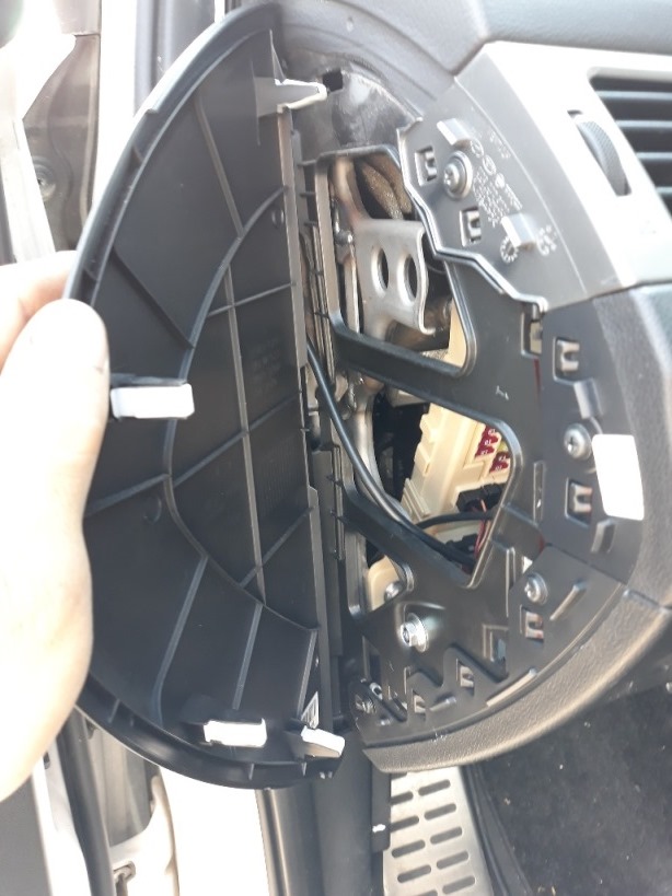 מנתקים את כל הקונקטורים שמאחורי הההגה – מהסוויץ', מידית האורות והוישרים, מסליל השעון: