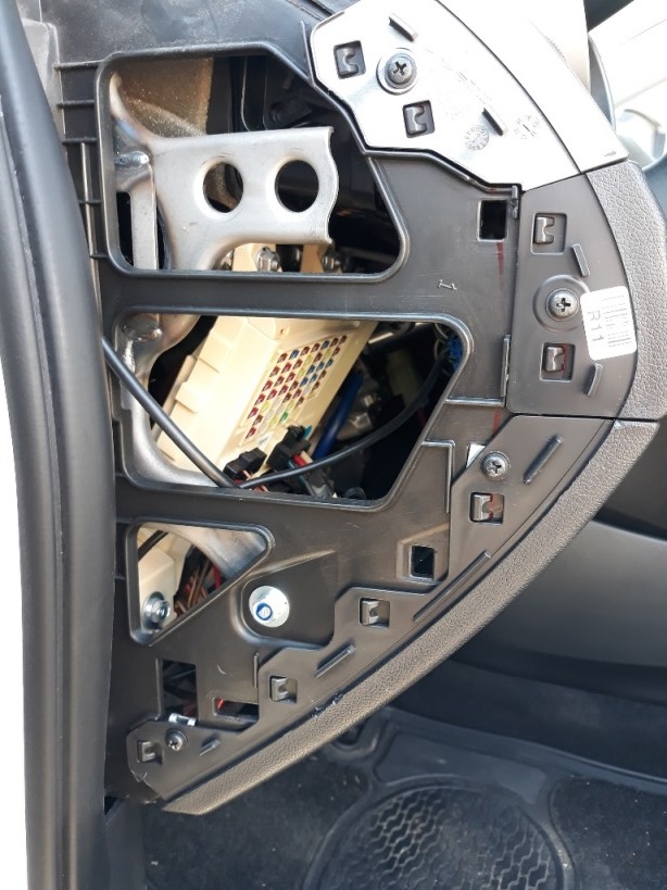מתחילים כשהרכב מונע כדי להיעזר בתגבור ההגה – שוברים הגה הצידה ופותחים בורג פיליפס של דיפון חובק ההגה, אח"כ לצד השני ופותחים את הבורג השני.