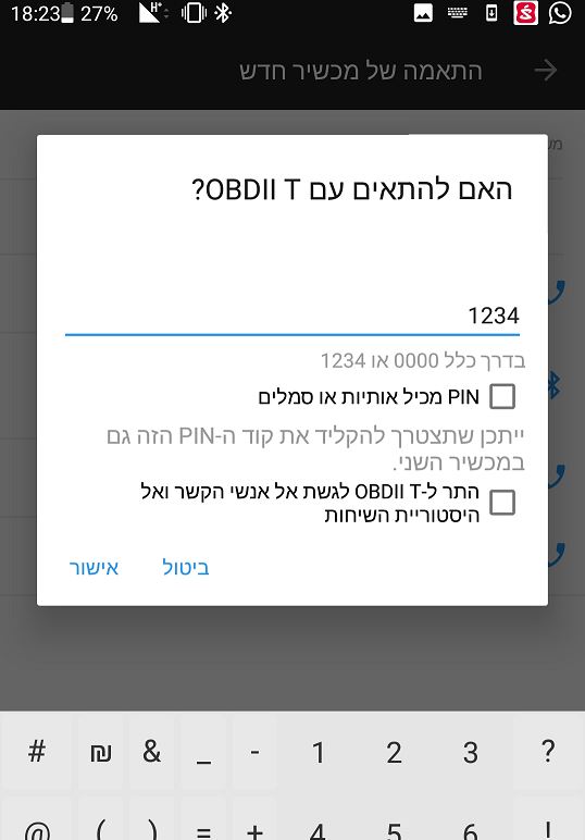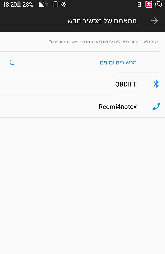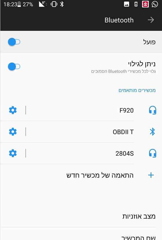 לאחר חיבור הסורק נדליק את הסוויץ' ברכב (שני סיבובי מפתח), ניכנס להגדרות בלוטוס בסמארטפון ונחפש התקני בלוטוס חדשים