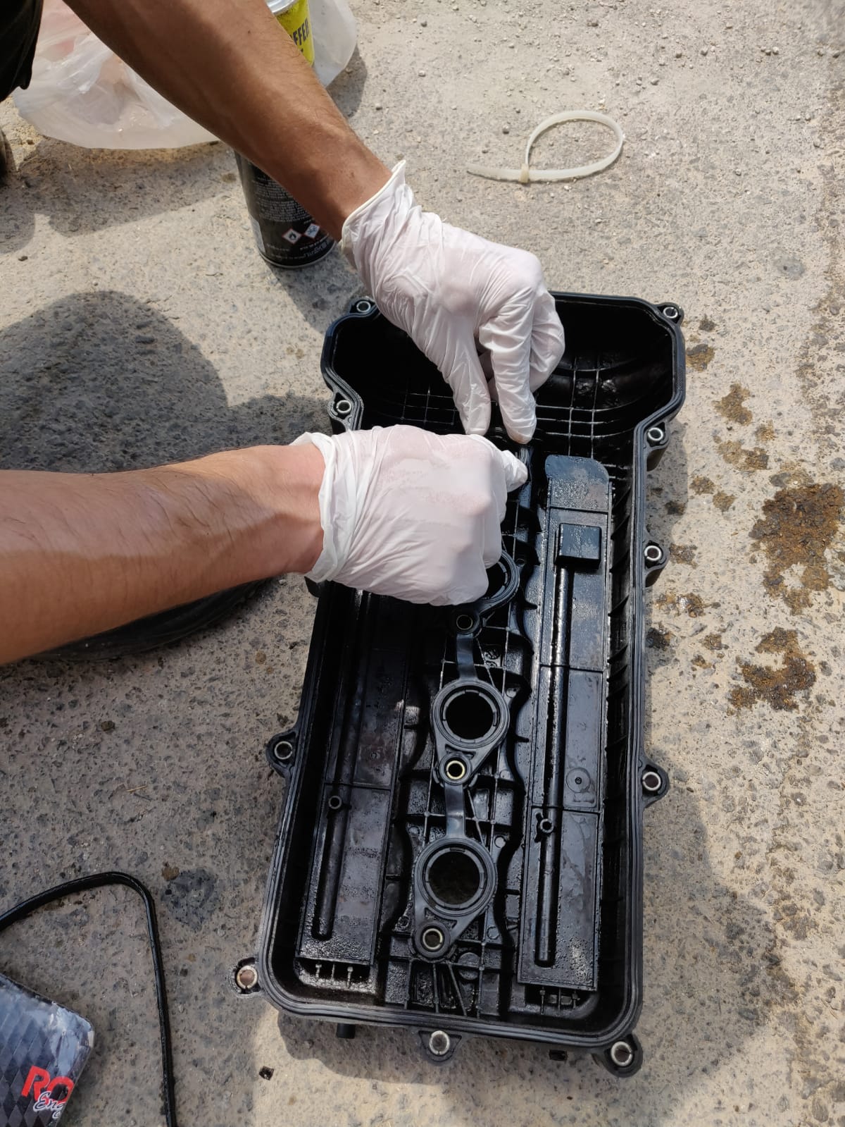 – כעת נחזור אל המנוע עצמו, ננקה בעזרת ה- scraper את כל המשטח שבו ישב האטם החדש, ננסה להחליק את המשטח הזה כמה שיותר ולהעיף שמן שרוף ושאריות אטם