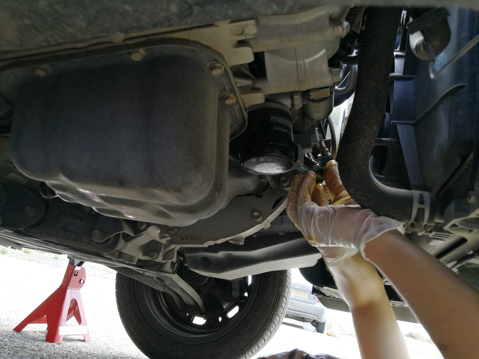 9. נניע את הרכב, נסתכל מתחת לוודא שאין נזילות מכיוון הפילטר או מהבורג. אם הכל תקין לאחר כ-2 דקות נכבה את הרכב.