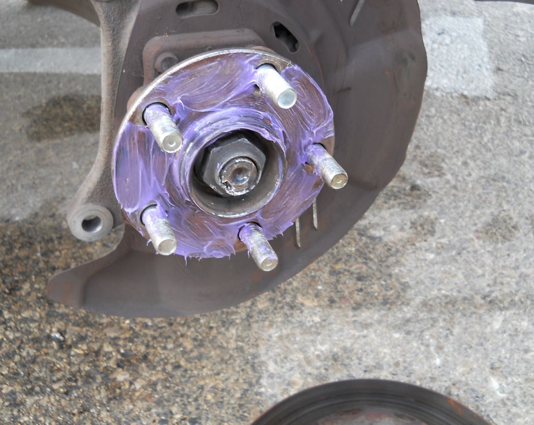 מגרזים את תושבת הקליפר במקום שבו הורדנו את החלודה בשלב הקודם ומרכיבים אותה חזרה על הצלחת. לא לשכוח את הברגים שלה.