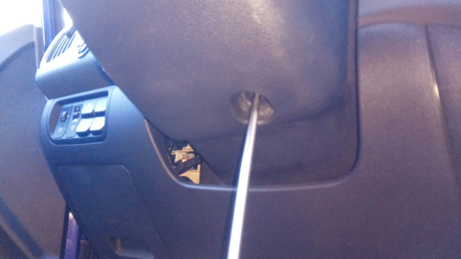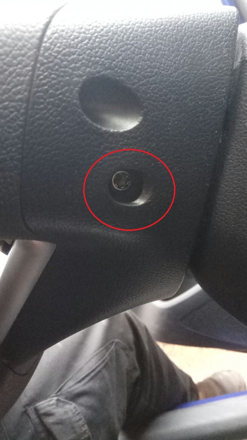 מפרקים פלסטיק חובק הגה – 2 ברגי פיליפס שעכשיו גלויים מולכם, והשלישי מתחת.