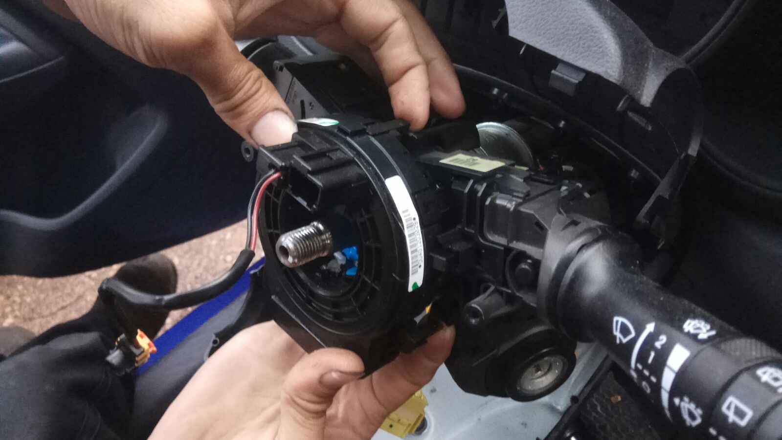 סליל שעון מאחורי ההגה – תפקידו להעביר מתח ומגע לכפתורי השליטה על ההגה, לכרית אוויר, לצופר,