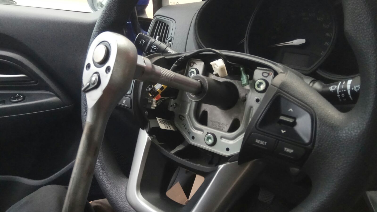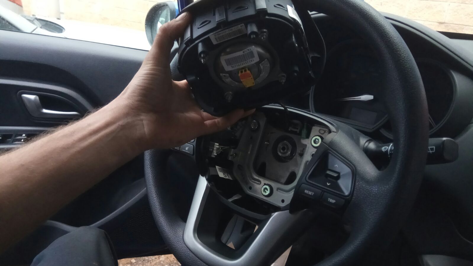 מחברים את הקונקטורים ומחזקים היטב את האום. מרכיבים הכל בסדר הפוך. מחברים מצבר ומניעים. מוודאים שכל הפונקציות פועלות ונורת כרית אוויר כבתה.