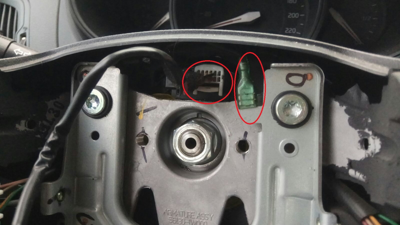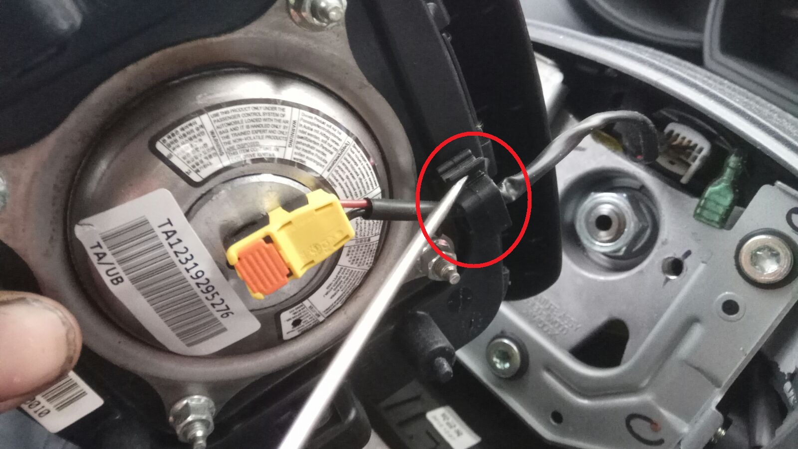 כעת משחררים 2 קונקטורים בהגה – אחד הארקה – יוצא במשיכה, השני קונקטור של צמת כפתורי השליטה.