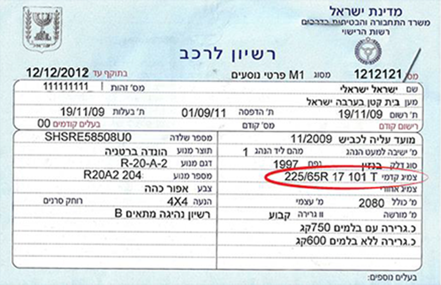 יצרן הרכב שלכם קבע איזה צמיג מתאים לו בצורה הטובה ביותר והמידע הזה ניתן למצוא ברשיון רכב שלכם