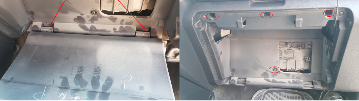 ראשית יש לפתוח את תא הכפפות וללחוץ משני