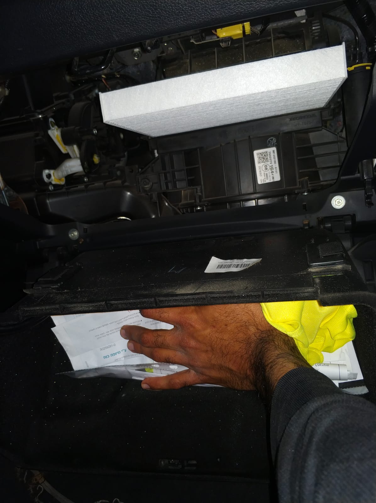 מסנן המזגן, כמו בהרבה רכבים אחרים, נמצא מאחורי תא הכפפות.