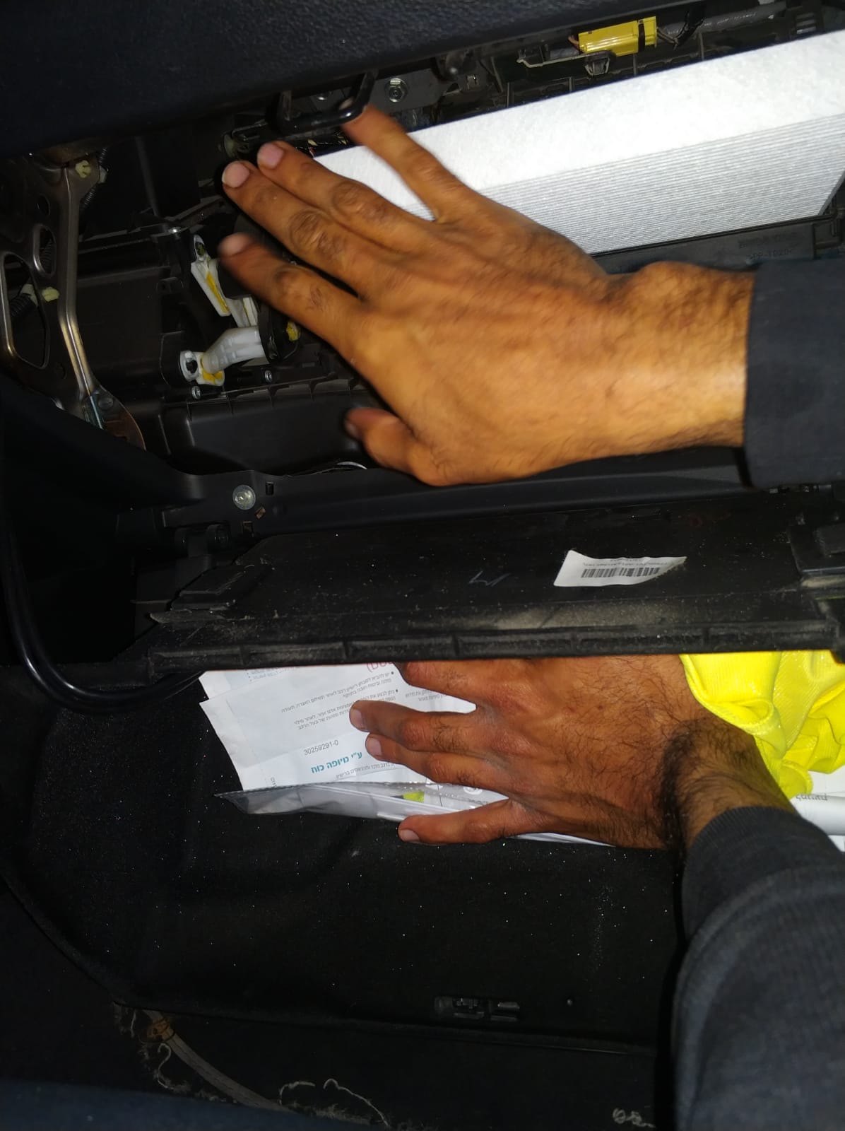 לאחר לחיצה על הקליפס, תא הכפפות נופל קדימה לכן צריך להחזיק חפצים או לרוקן את תא הכפפות.