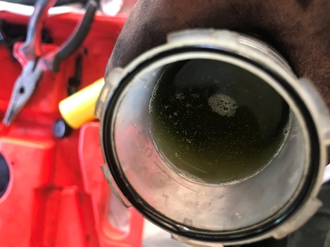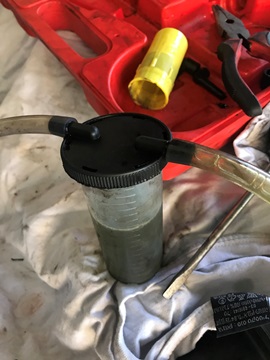 2. שאיבת הנוזל מהכוסית ומילוי נוזל חדש כמעט עד לפתח הכוסית. באאודי A1 יש כמעט חצי ליטר רק בכוסית עצמה.