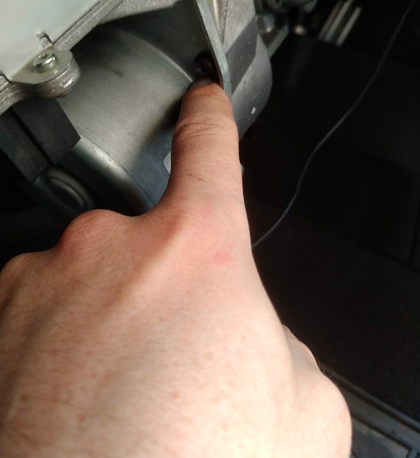 – נוציא 4 ברגיי טורקס T25 המחזיקים את המנוע. המנוע בדגם הזה מחובר עם חוטי חשמל ולא ניתן להפריד לגמרי את המנוע מיחידת ההיגוי, לכן אנו נחזיק את המנוע ביד אחת ועם היד השנייה נוציא את שאריות הקופלונג. בעדינות, לא למשוך את המנוע יותר מדי החוצה, חלק מהחוטים עדינים. תפעילו אקסטרה ריכוז בשלב הזה.