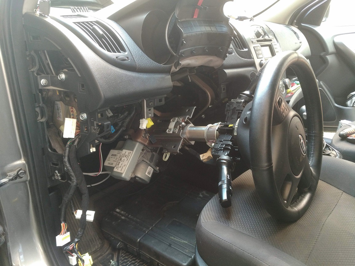 לאחר מכן מכלול ההגה – בהתחלה מחזירים את החלק האחורי שייתפס עם הלשונית, שני אומים ליד ההגה ושני ברגים ליד קיר האש. 3 קונקטורים של מחשב, 7 קונקטורים של יחידת ההיגוי, חבקים של צמת החשמל, חיפוי ליד הברכיים עם 3 קונקטורים ו OBD. שני מכסי קופסת הפיוזים, שני חיפויי הפלסטיק מאחורי ההגה, קוטב שלילי במצבר.