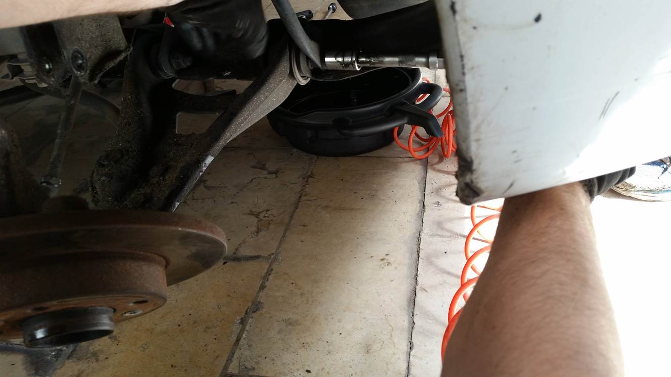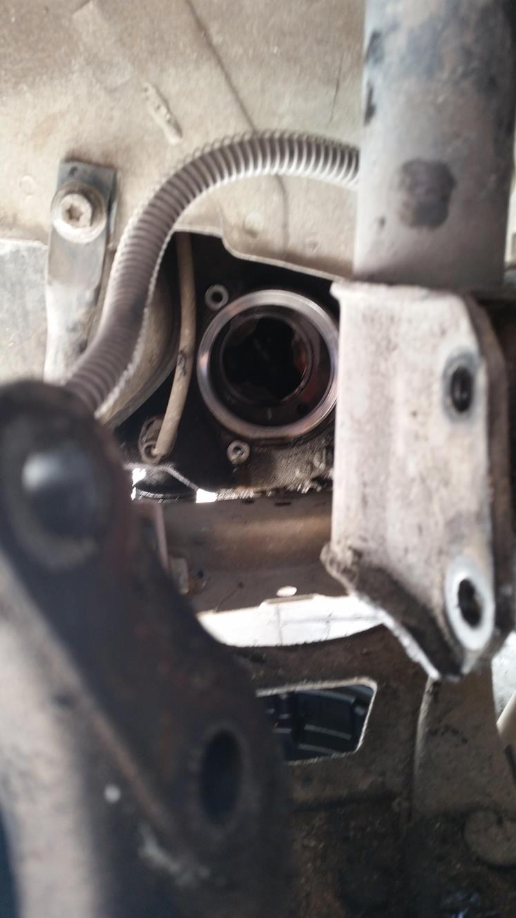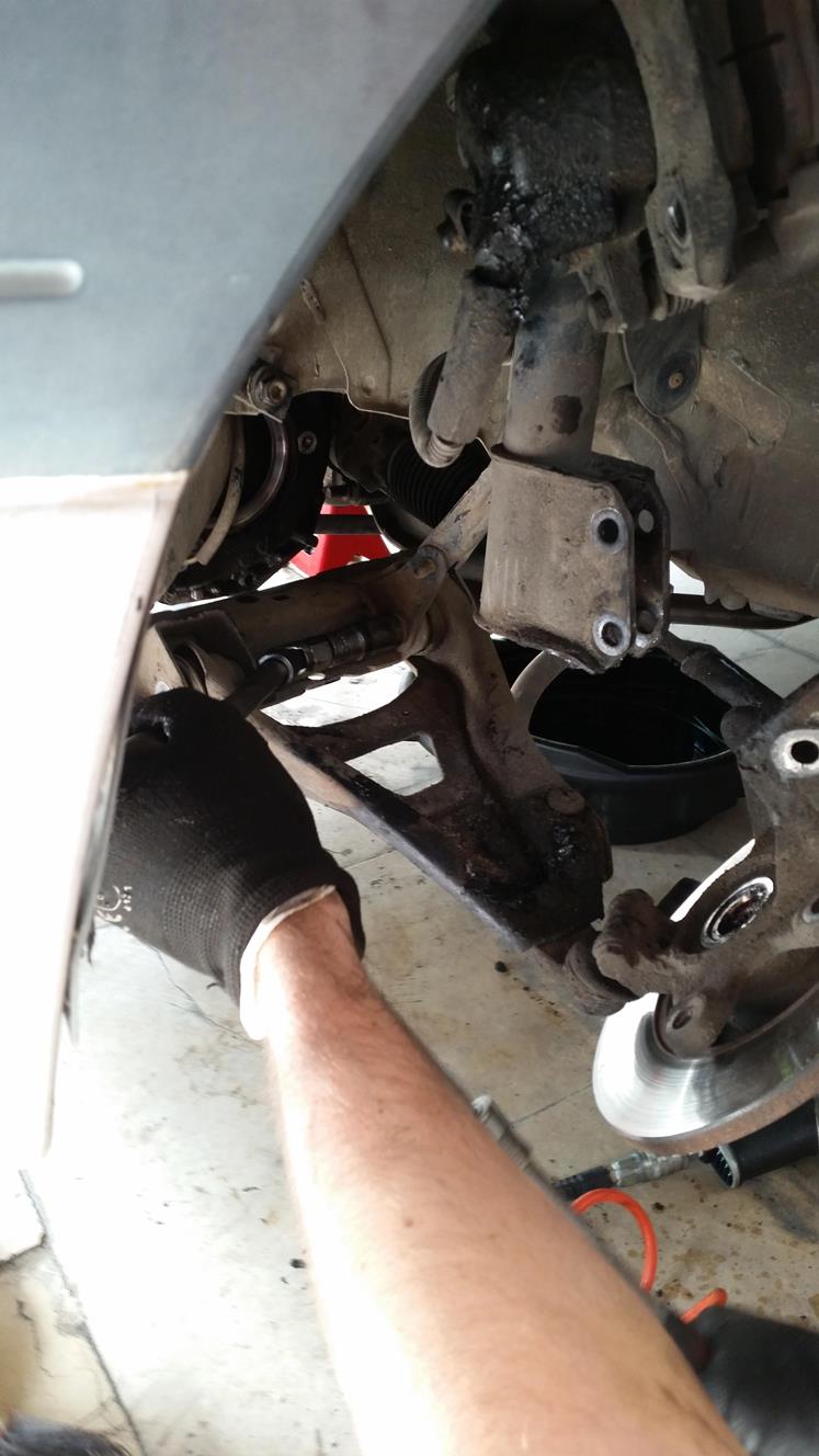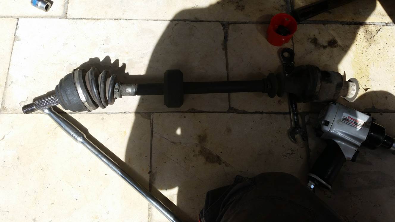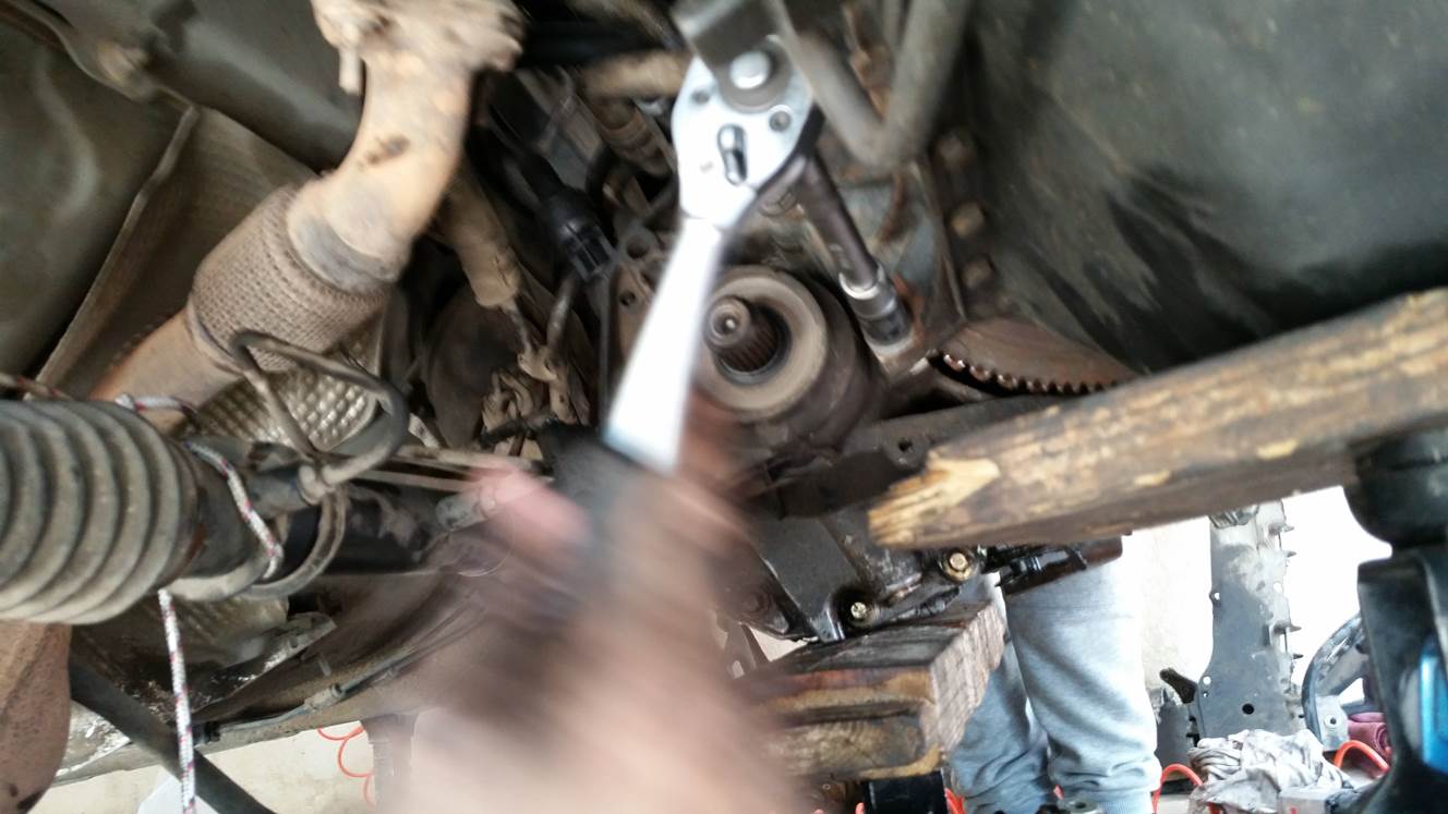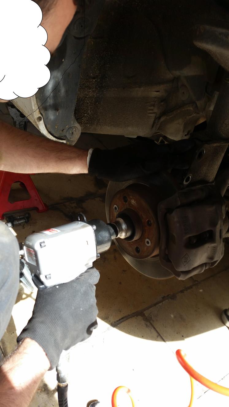 פירוק בורג מרכזי, הוצאה מהתבור ומשיכת הציריה (צד נוסע) החוצה.