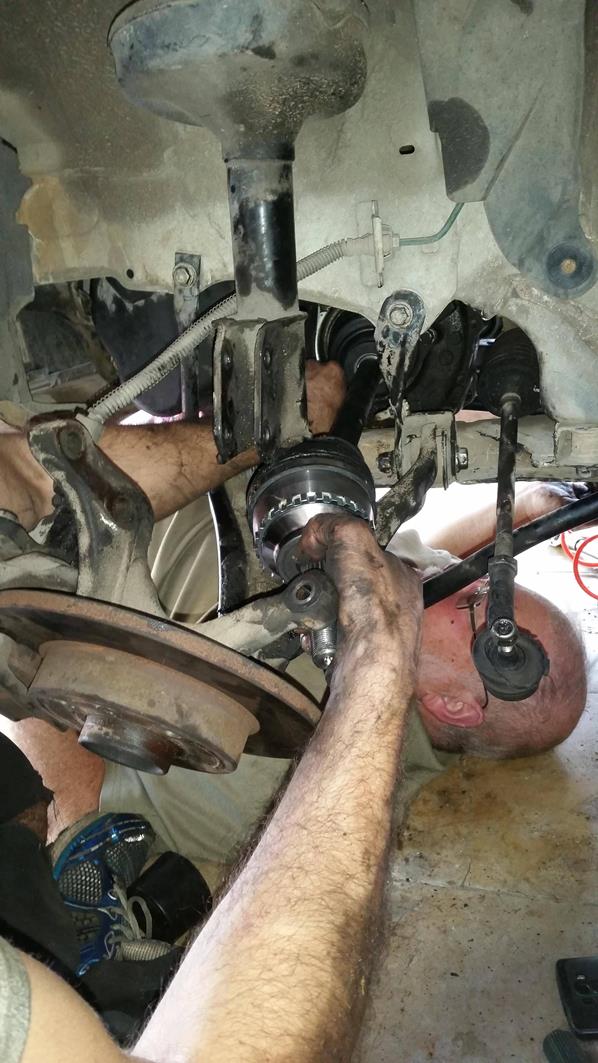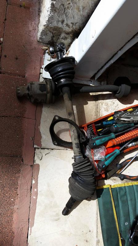 פירוק 3 ברגים שתופסים את הציריה בצד הנהג, הוצאה מהתבור ומשיכה החוצה.