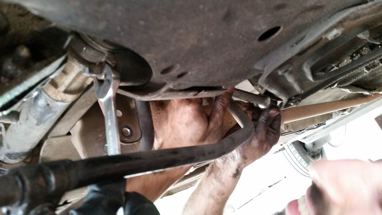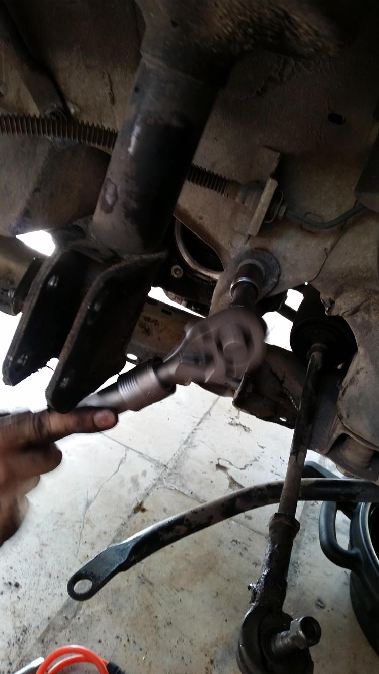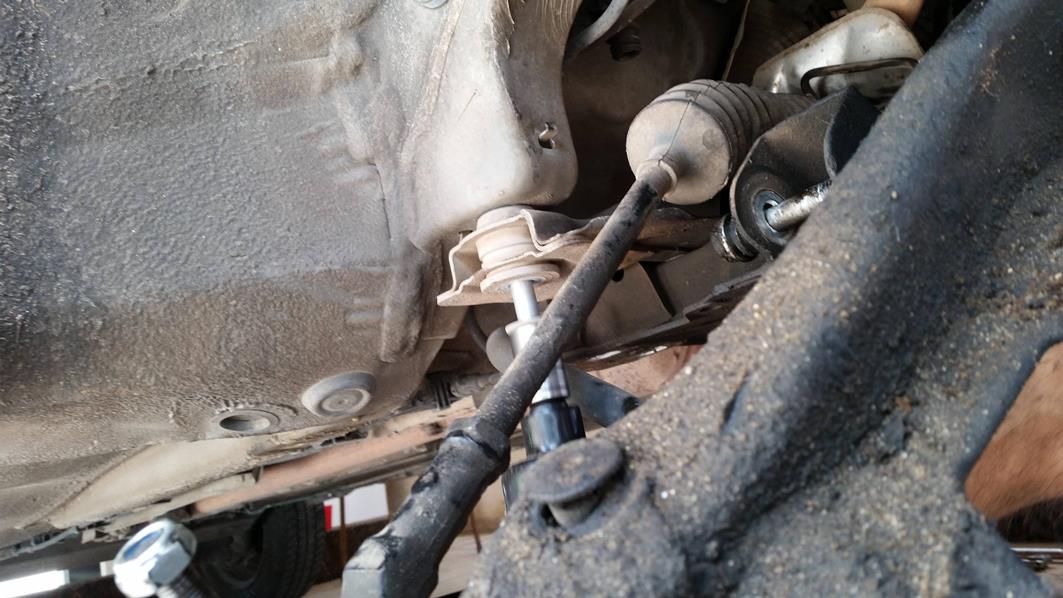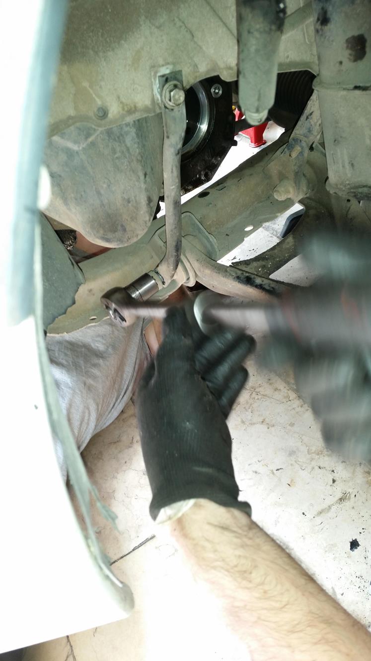 פירוק מוט קישור של מוט מייצב, הפירוק מלמעלה ולמטה ביחד כי הוא הסתובב חופשי.