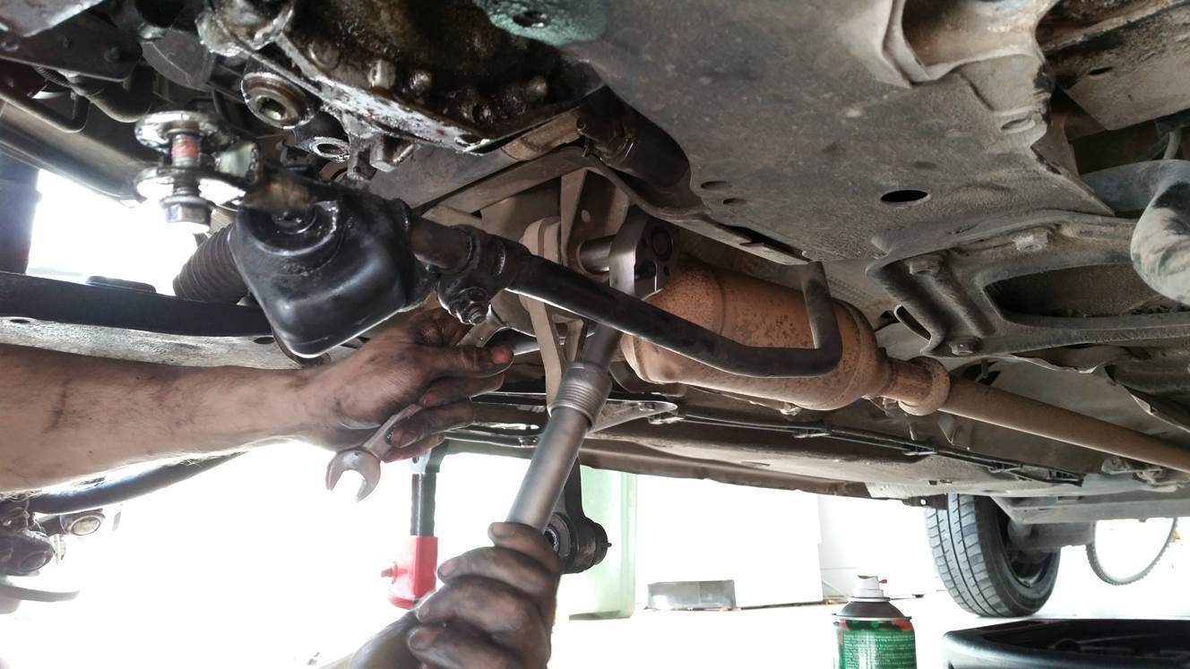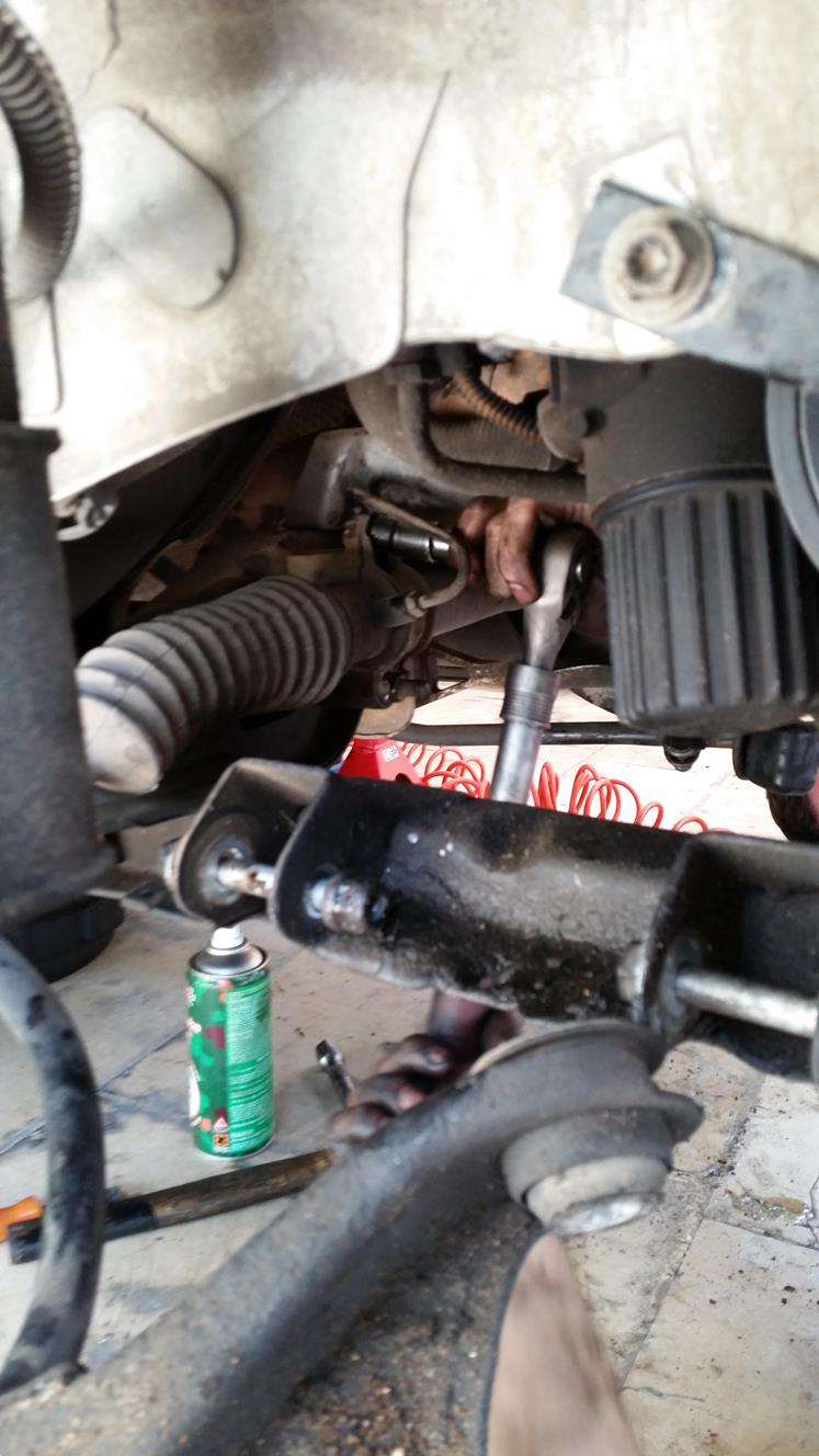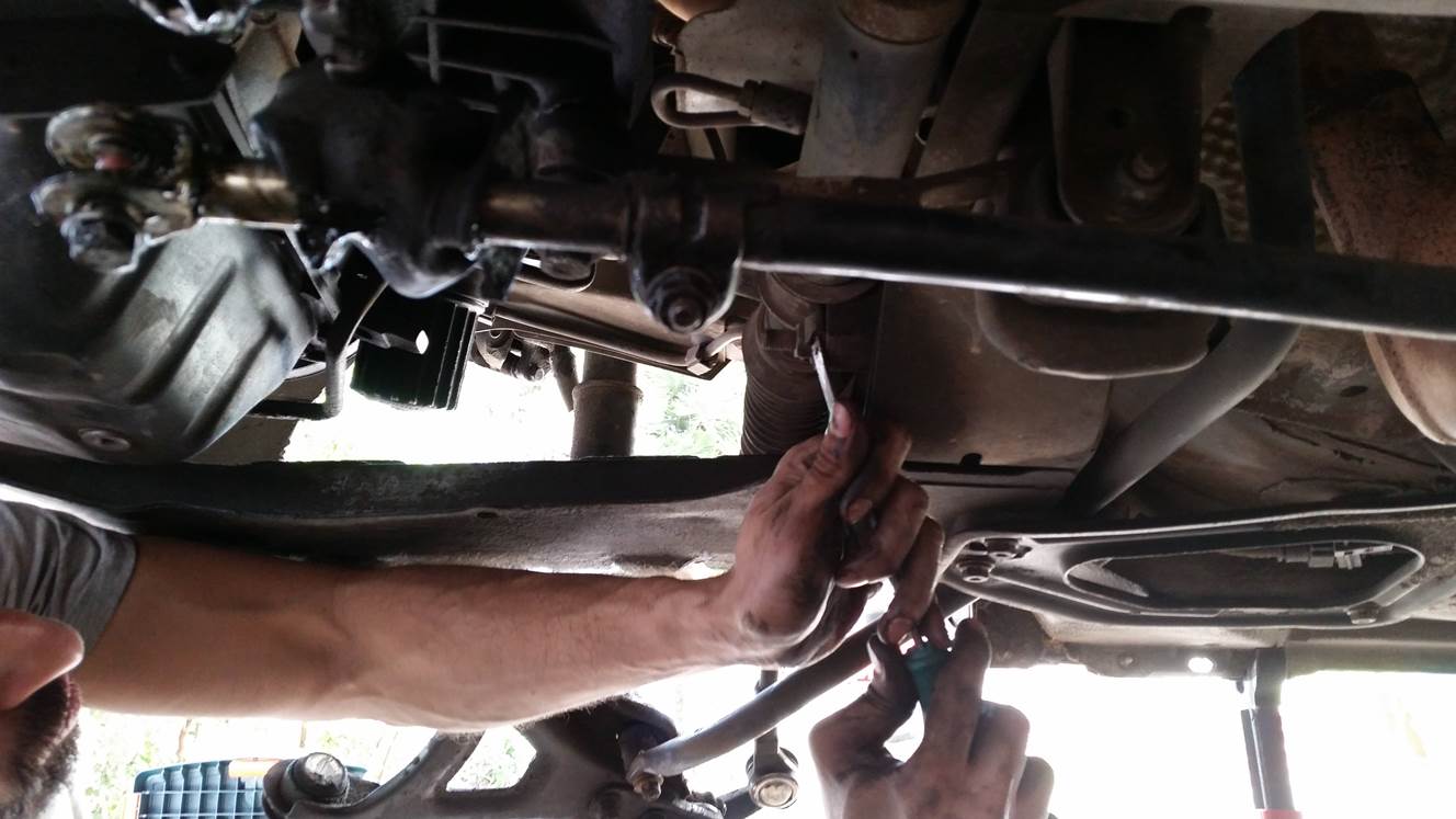 פירוק מוט קישור של מוט מייצב, הפירוק מלמעלה ולמטה ביחד כי הוא הסתובב חופשי.