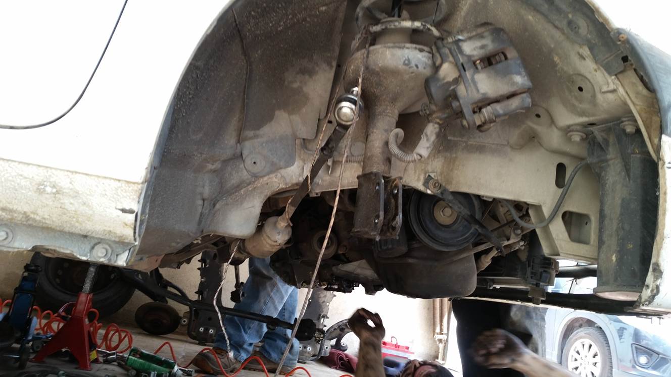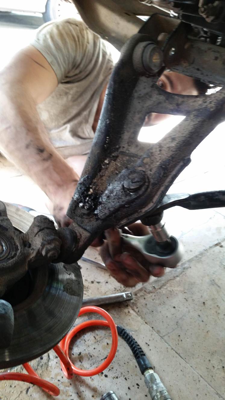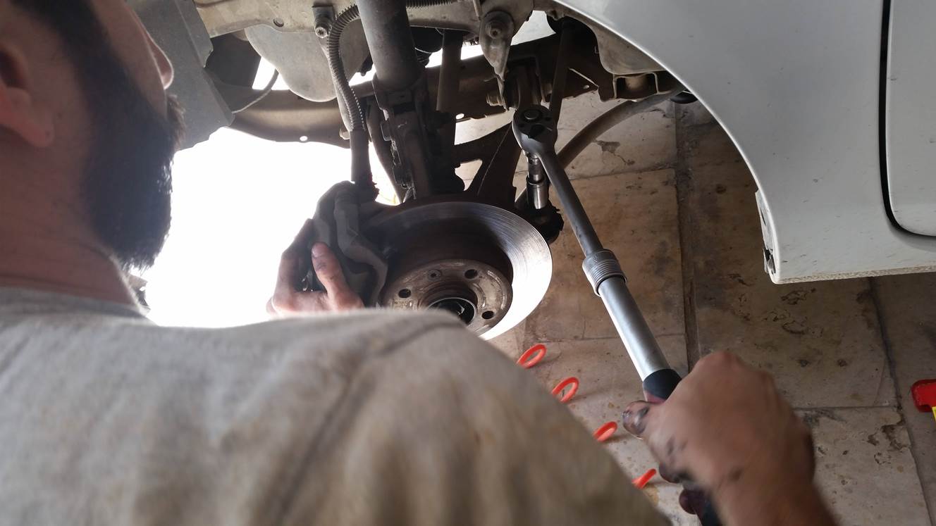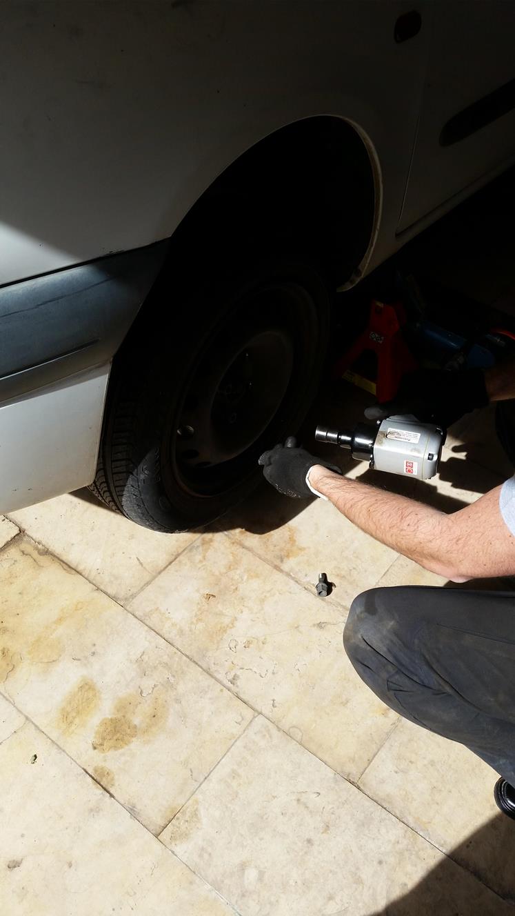 הרכבת הציריות וסגירת שלושת הברגים של הציריה בצד הנהג, הרכבה של תפוחים, מוט מייצב, ברקסים,בולמים ואום מרכזי.