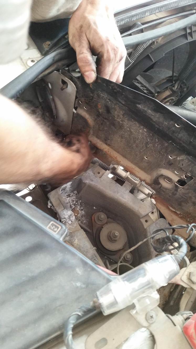מנתקים את הרדיאטור מהגשר מלמטה, ועוד כמה ברגים והגשר גם יוצא לחופשה 🙂