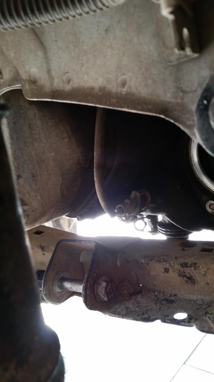 פירוק משולש צד נוסע, 2 ברגים ואומים בצד ימין (אחד שתומך אותו לשלדה) ואחד בצד שמאל.