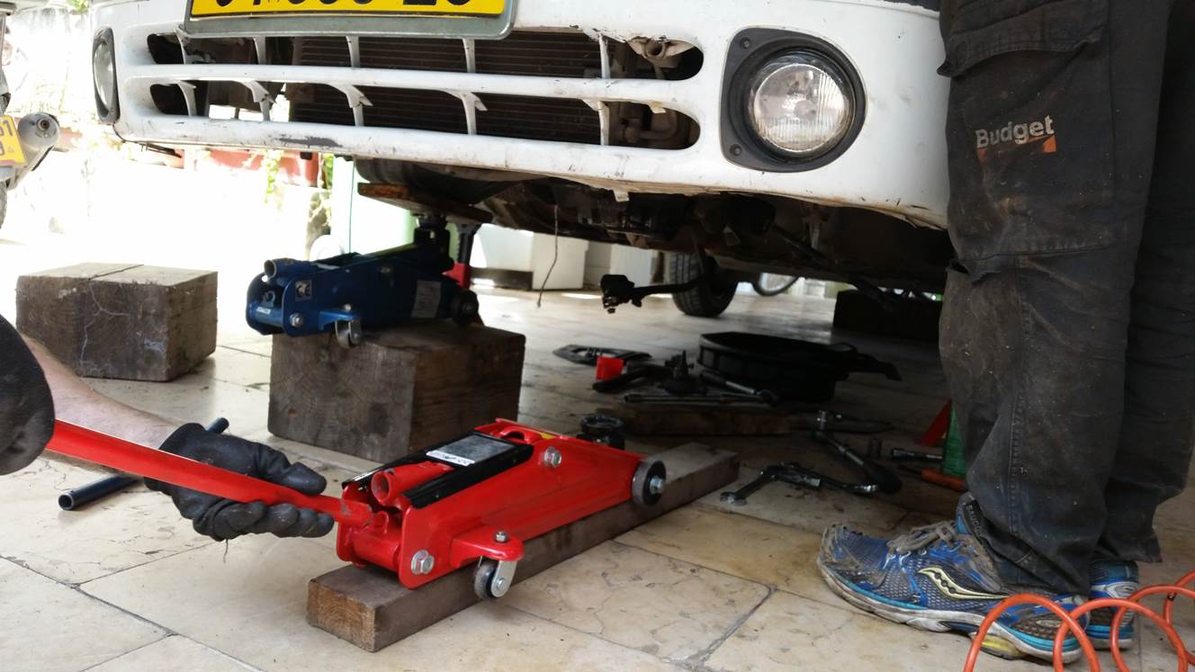 זוג ג'קים לתמוך במנוע ובגיר,