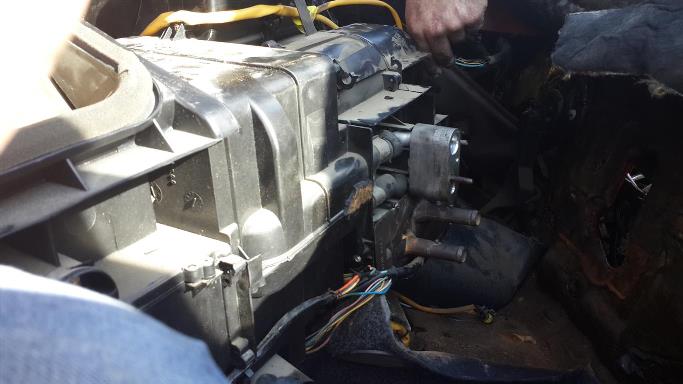 לאחר מכן מוציאים את הברגים בקיר האש מתחת למכסה המנוע, שמזחיקים את יחידת המיזוג.