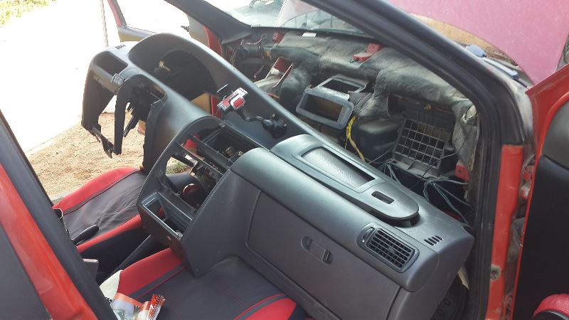 כדי להוציא את כל הדשבורד החוצה, יש להוריד את ההגה, אין צורך לפרק אותו, רק להוריד אל מושב הנהג או אל הריצפה.