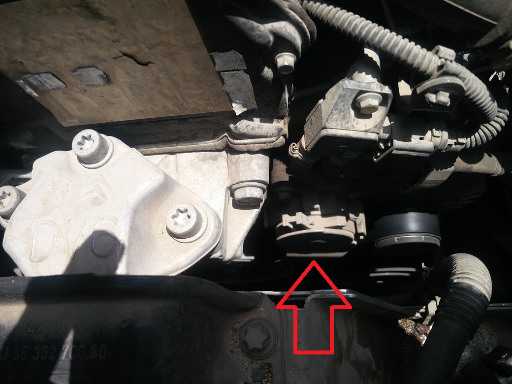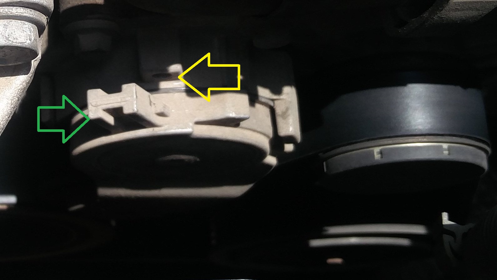 1. מאתרים את המותחן של רצועת האביזרים (חץ אדום)