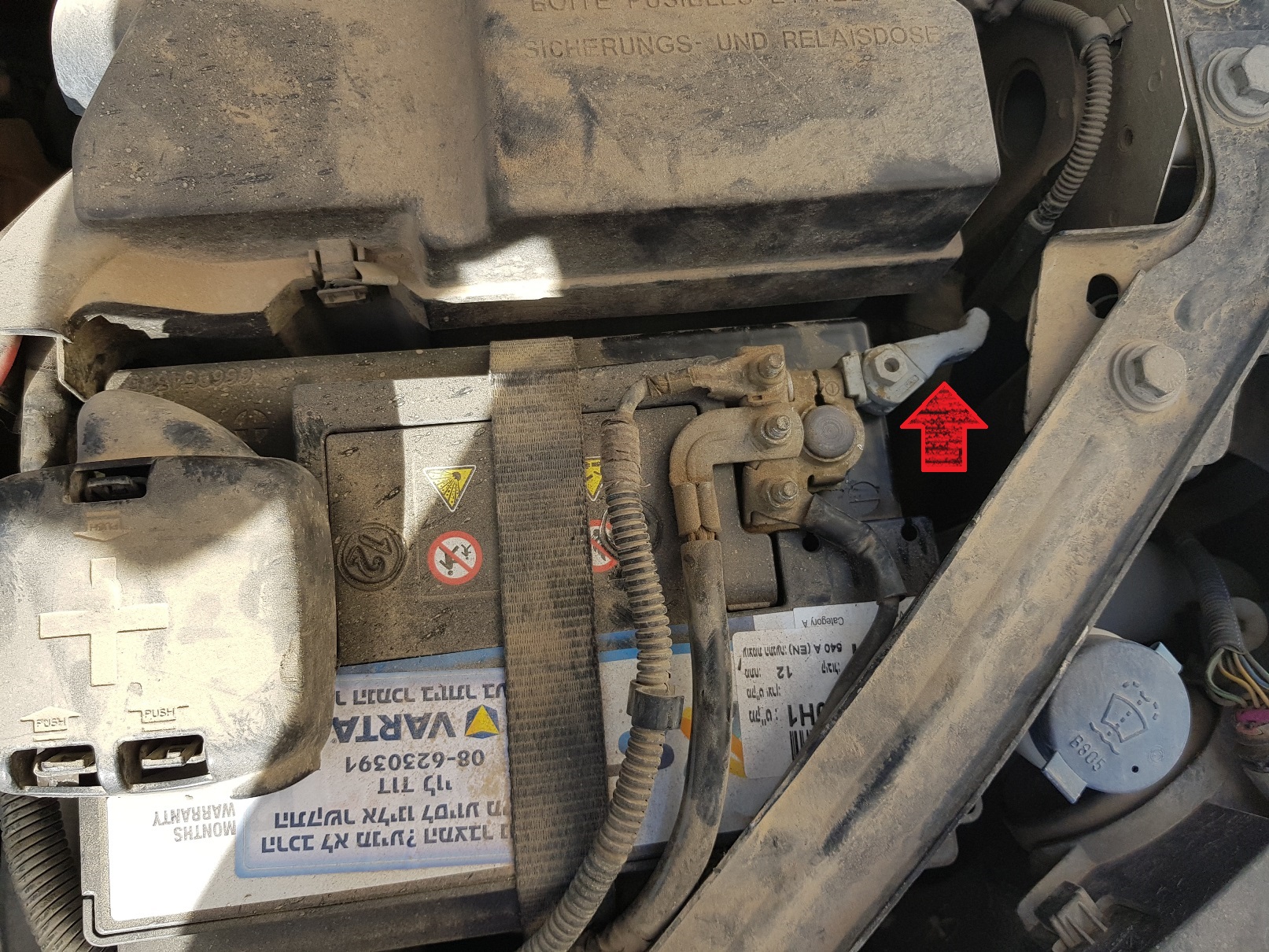 מנתקים את הקוטב השלילי של המצבר על ידי פתיחת הידית והרמת החיבור.