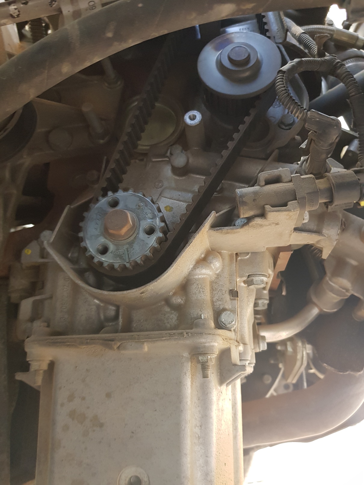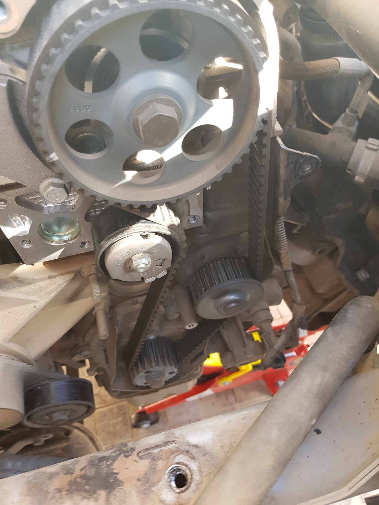 זהו סיימנו להרכיב את רצועת התזמון למקומה. כעת מרכיבים הכל למקומו בסדר הפוך. לא לשכוח לחבר למקומו את צינור הרדיאטור ולמלא נוזל קירור לפני הנעה.