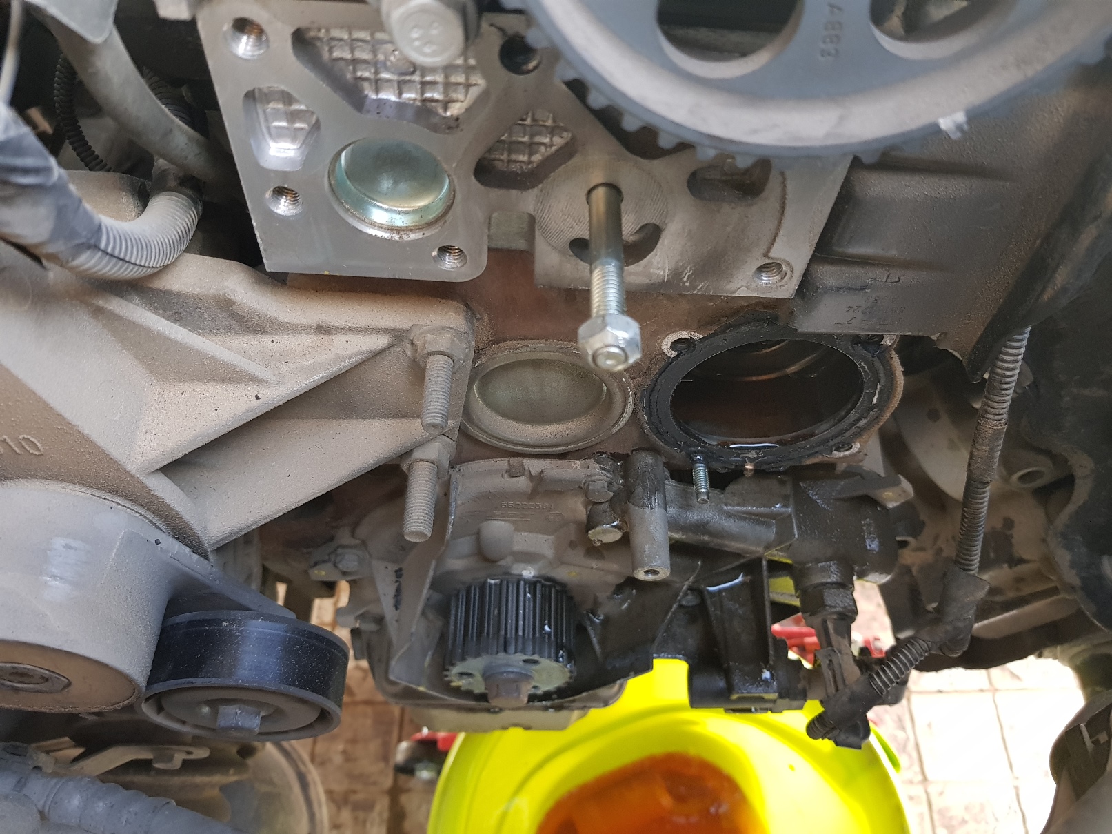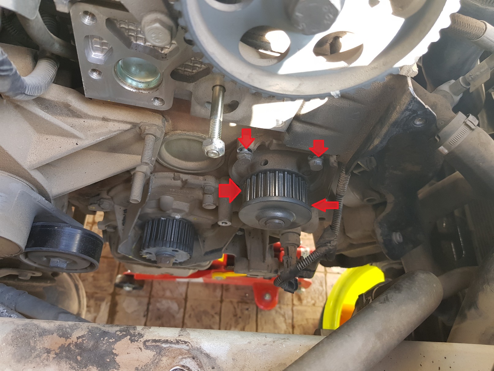 מורחים שכבה דקה על היקף המשאבה החדשה ומתקינים אותה במקומה. סוגרים את הברגים בהצלבה ל10 ניוטון למטר.