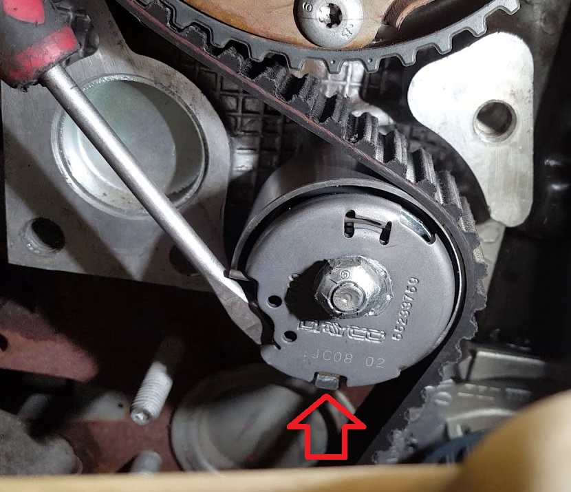 מסובבים את המנוע ידנית (אם ראצ'ט ובוקסה 16) מהקראנק 2 סיבובים ומוודאים שהגלגלי השיניים חוזרים לסימונים שלנו שעל הבלוק. כדאי לסובב עוד מספר סיבובים על מנת שהרצועה תתפוס את מקומה.