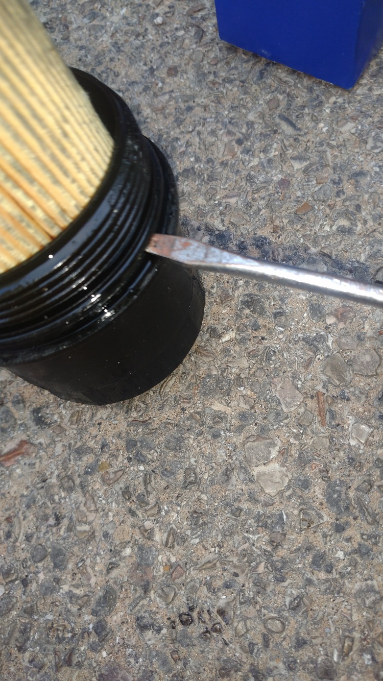 עם מברג שטוח נוציא את הגומיה הישנה ממכסה בית הפילטר, ונכניס במקומה את הגומיה החדשה.