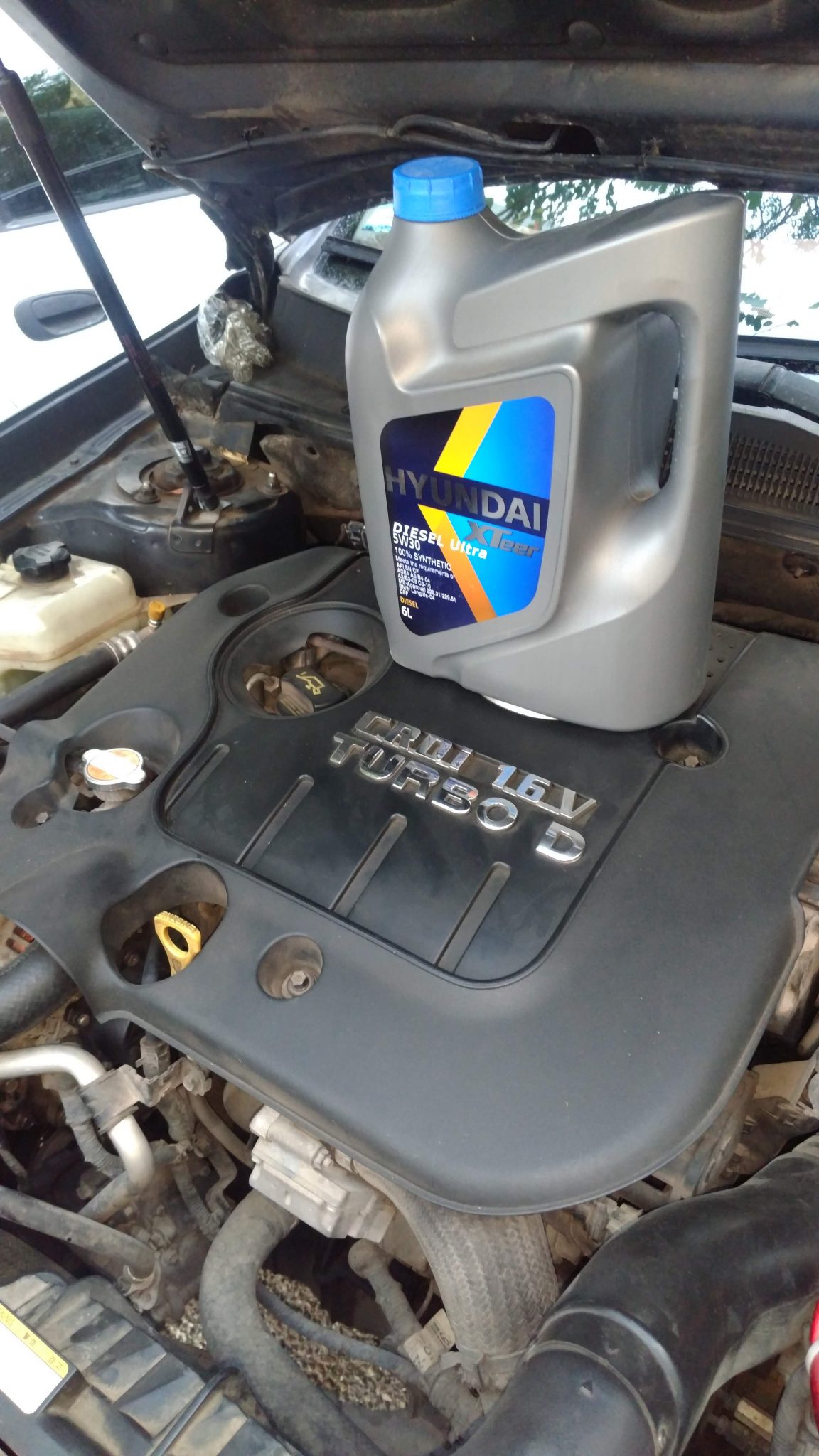 נמלא 6 ליטר של שמן בצמיגות 5W30 ותקן API SM\CF. אני משתמש בגלון שמגיע בדיוק 6 ליטרים, מחברת בת של יונדאי בקוריאה.