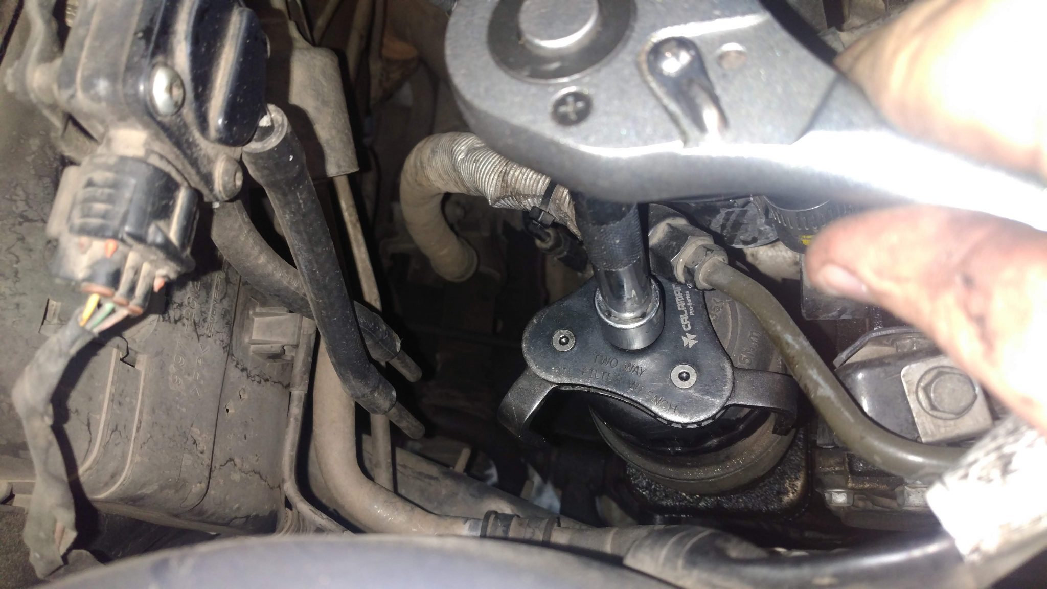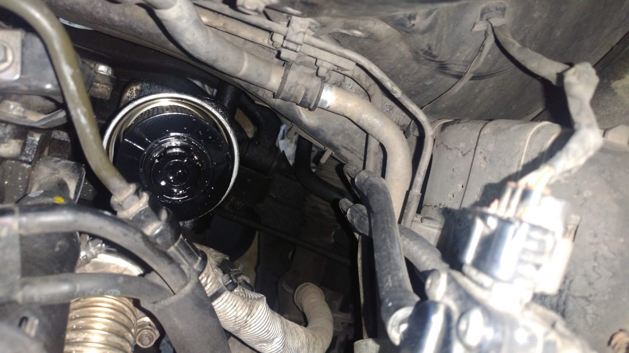 בתא המנוע בצד הקרוב ביותר למושב הנוסע, מאחורי המנוע, נראה את בית פילטר השמן שלנו