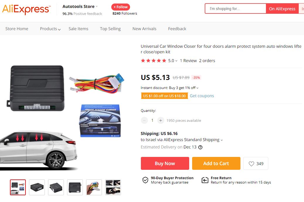 אם הקישור כבר לא זמין, המוצר נקרא car window closer וככה הוא נראה (חשוב שיהיה בעל אותה דיאגרמה)