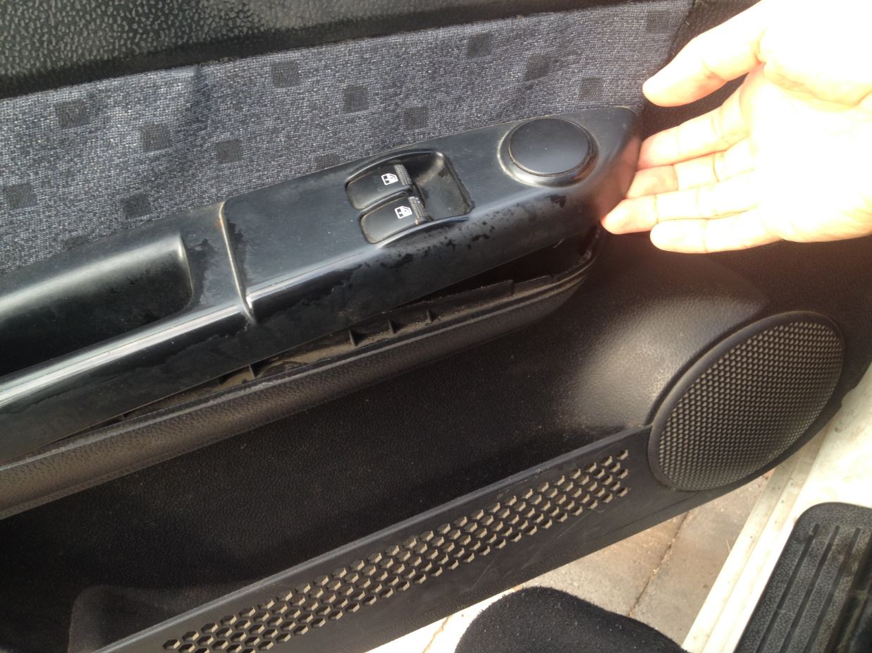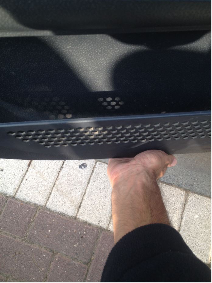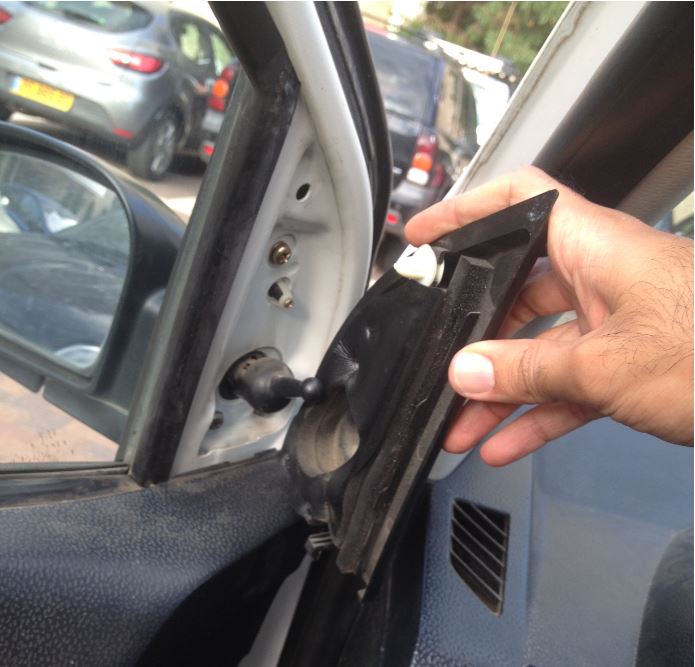 נוציא את חתיכת הפלסטיק שמאחורי הידית שמכוונת את מראת צד שמאל של הנהג
