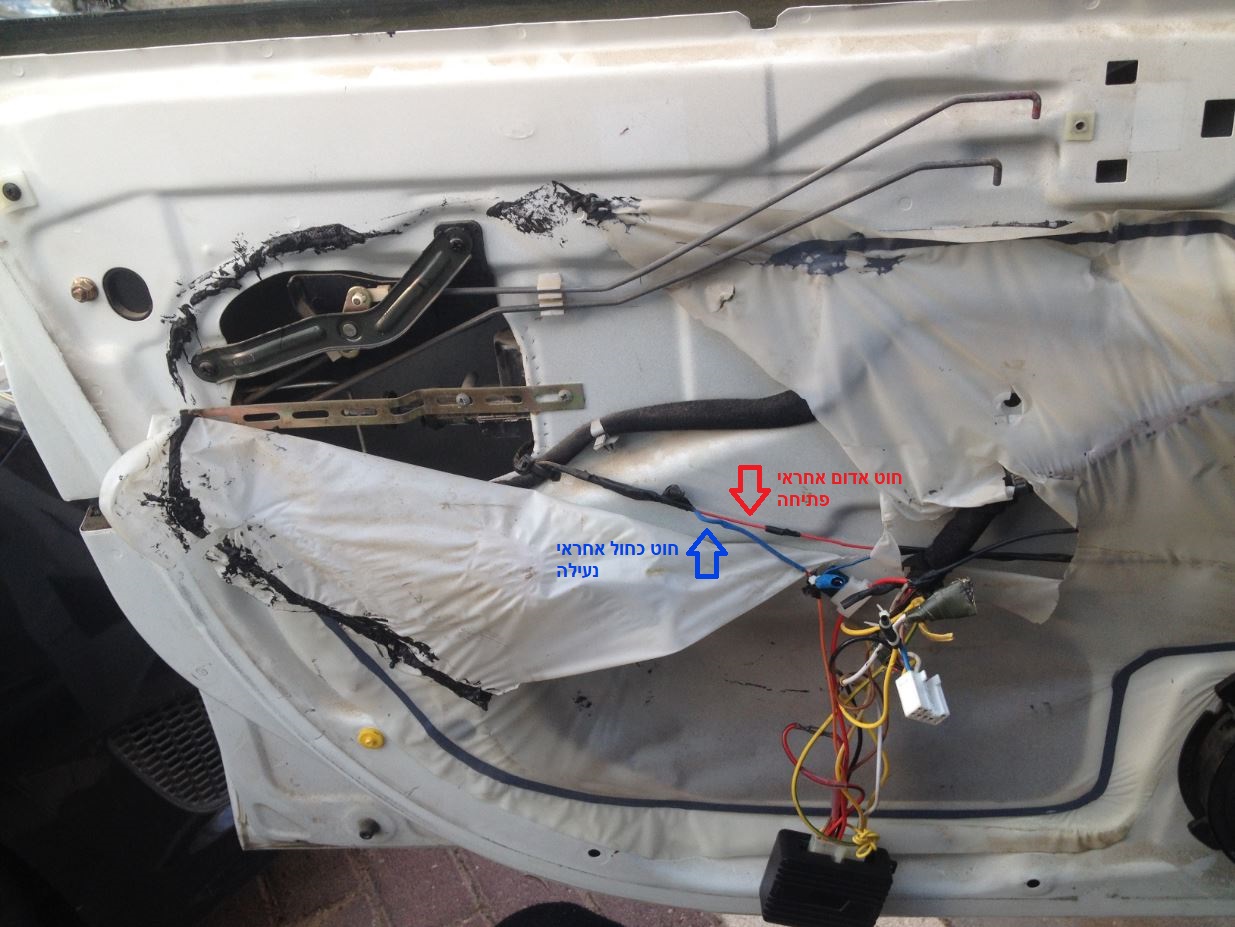 נתחיל בחיפוש החוט שאחראי על נעילת הדלתות כשלוחצים על נעילת הרכב השלט (בעזרת חוט זה מרים החלונות שלנו ידע מתי לחצנו על נעילת הרכב וירים את החלונות). בנוסף נצטרך לגלות (הסבר בהמשך) האם בעת לחיצה על השלט הוא מעביר פלוס או מינוס, זה חשוב להמשך ההתקנה.