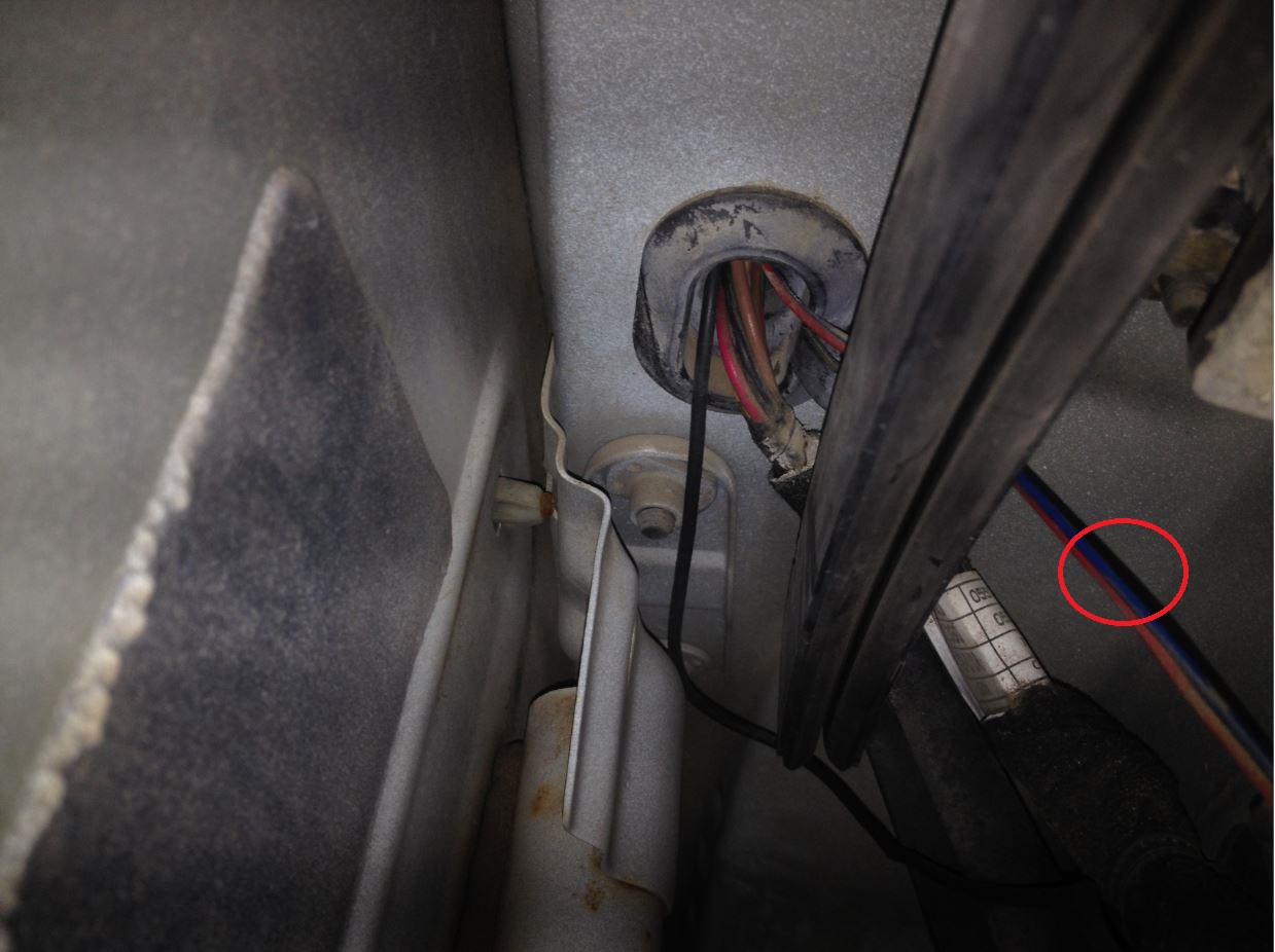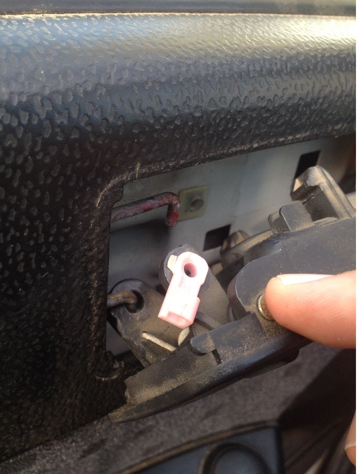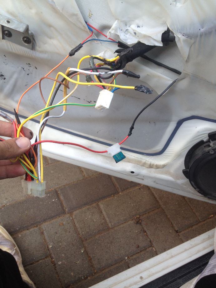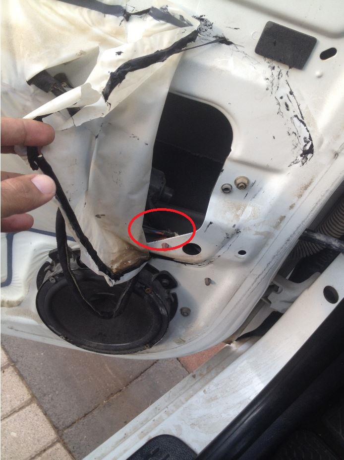 נמשיך. צריך לחפש חוט שעובר מהדלת אל תא הנהג דרך הצינור המקשר, ושלא מגיע מהרמקול כמובן או מהקונקטור של פקד החלונות. למה? כי בתא הנהג (לפחות ברכבים שברשותי), באזור קופסת הפיוזים, נמצא מנגנון הנעילה של הרכב. החוט שאנו מחפשים (שמעביר את פקודת הנעילה) חייב מן הסתם להיות מחובר למנגנון הזה כי המנגנון הוא זה שמפעיל את החוט.