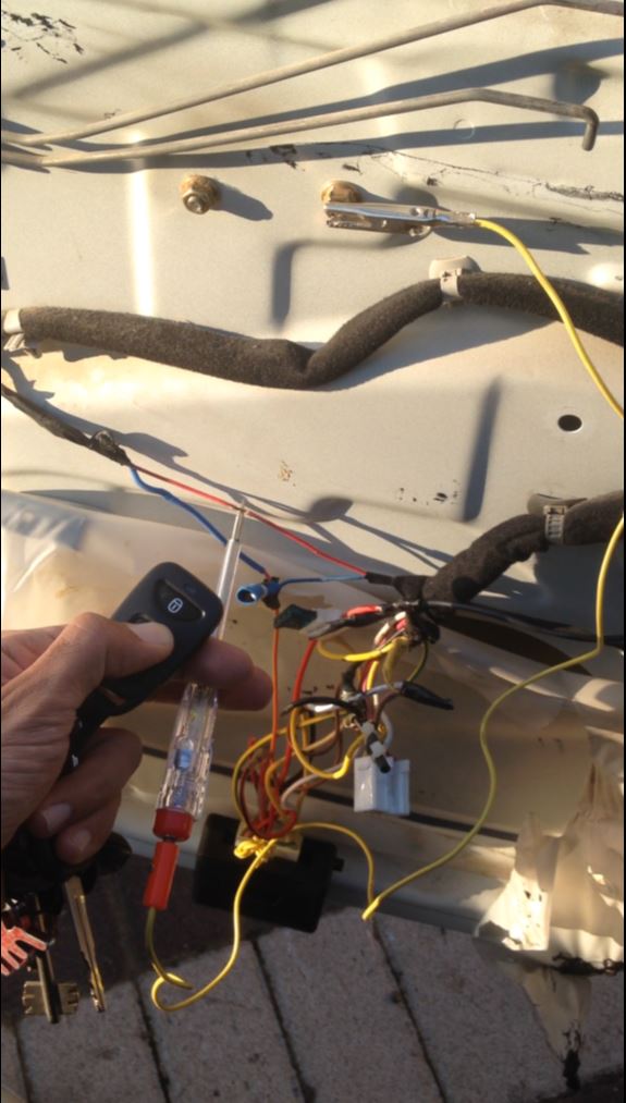 אם האור בטסטר נדלק עוד לפני שלחצנו על הנעילה בשלט, והלחיצה על השלט כיבתה אותו לשבריר שניה, גם טוב. מצאנו את חוט הנעילה ואנחנו יודעים שהוא כמעט בוודאות מעביר פלוס. נעשה לו בדיקת פלוס כדי להיות בטוחים