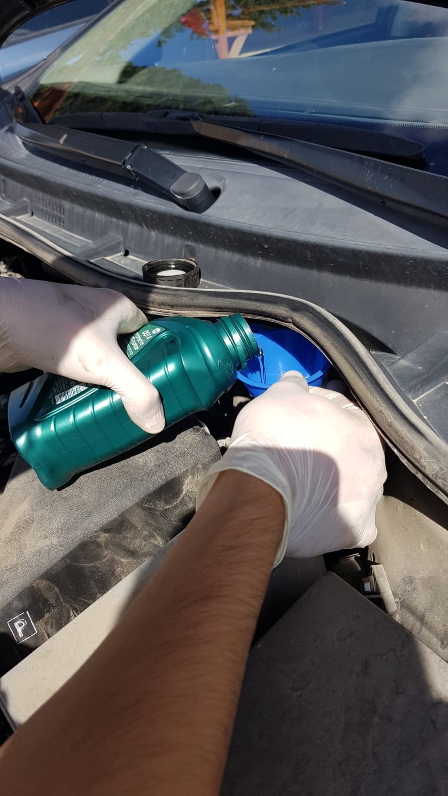 כעת זה הזמן לעלות למעלה, נמלא כ-3-3.2 ליטר שמן חדש דרך פקק המילוי. ונסגור אותו ואת המדיד.