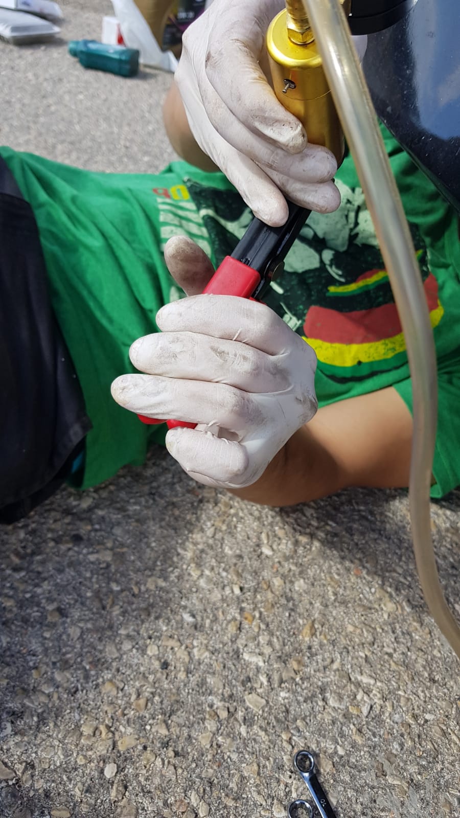 כעת ישנן 2 גישות, יש האומרים שיש להתחיל מהגלגל הקרוב ביותר למיכל ולהתקדם עד הגלגל הרחוק יותר. ויש האומרים שלהפך. אני טוען שכל עוד מחליפים באופן קבוע ודואגים למצב הנוזל זה לא באמת משנה. אני מתחיל מהקרוב ביותר סתם בגלל נוחות.