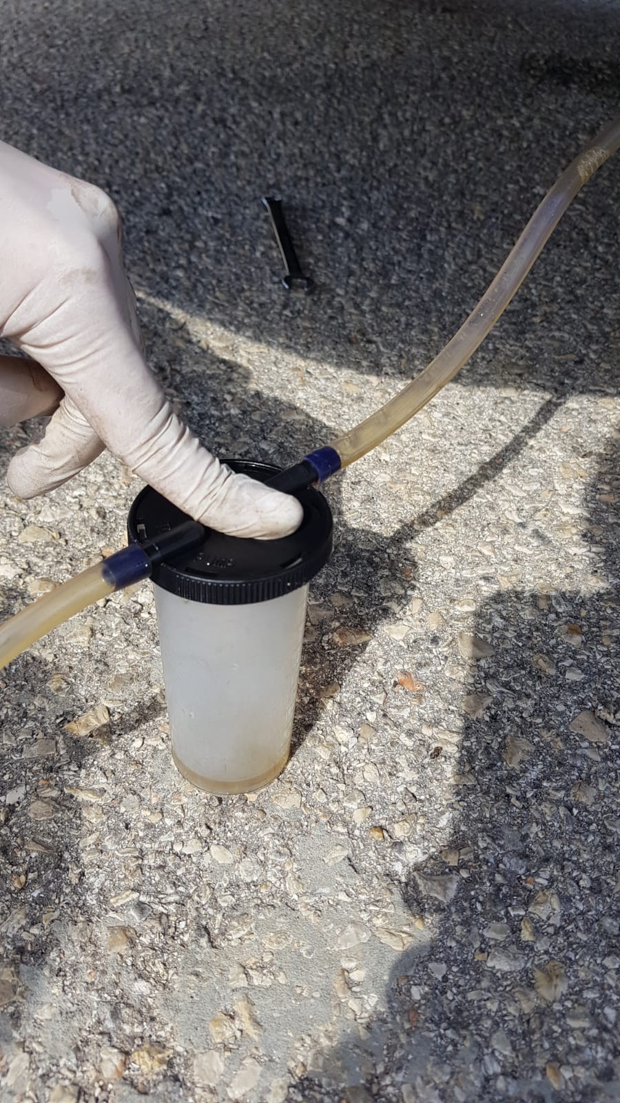 תשאבו בין 100 ל- 300 מ״ל כתלות במצב הנוזל ובכמה נוזל קניתם. ורוקנו את מה שאת שואבים כל פעם לבקבוק הדדי שהבאתם.