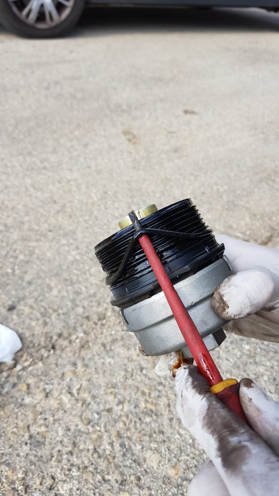 נרד מתחת לרכב ונסגור את בית המסנן.