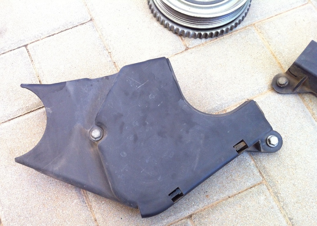 מניחים אותו בצד וכעת נגלה לעינינו גלג"ש הקראנק. ניתן עכשיו לפרק את כיסוי הטיימינג התחתון, שמוחזק רק עם בורג אחד 10 מ"מ. מנתקים גם ממנו את צמת החשמל שרצה בתוך התעלה שלו.
