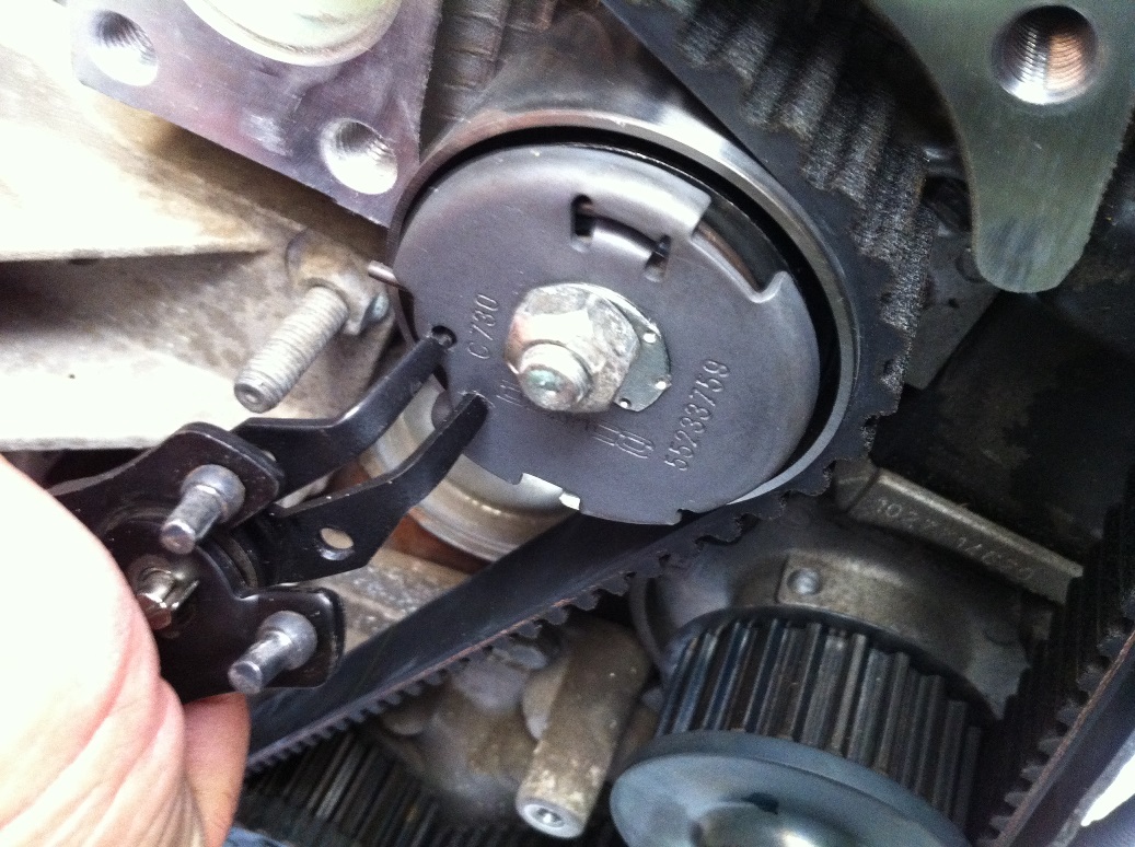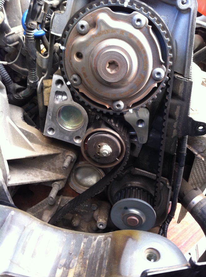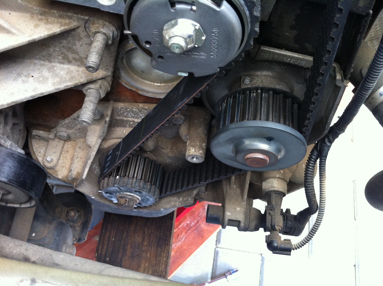מתחילים מהקראנק ומלבישים אותה לפי הפסים שעליה, לצערי לא צילמתי את זה אך אחד מהם יושב מול החריץ והשני מול עיגול שיש בגלג"ש. ממשיכים למשאבת המים תוך כדי מתיחה עדינה,
