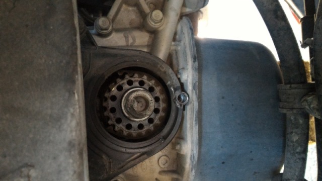 כשכל הרצועות בחוץ, מפרקים לגמרי את פולי משאבת המים, פולי כפול שבנוי מ-2 פולים נפרדים. פה המשאבה כבר ללא הפולים: