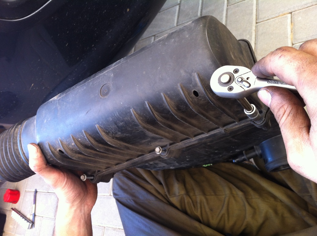 מפרקים את בית פילטר האוויר. הוא תפוס למקומו עם 2 ברגים 10 מ"מ, וטבעת גומי שנכנסת לרגלית באזור בית המצערת. בנוסף מנתקים ממנו 2 צינורות (ואקום ונשם).